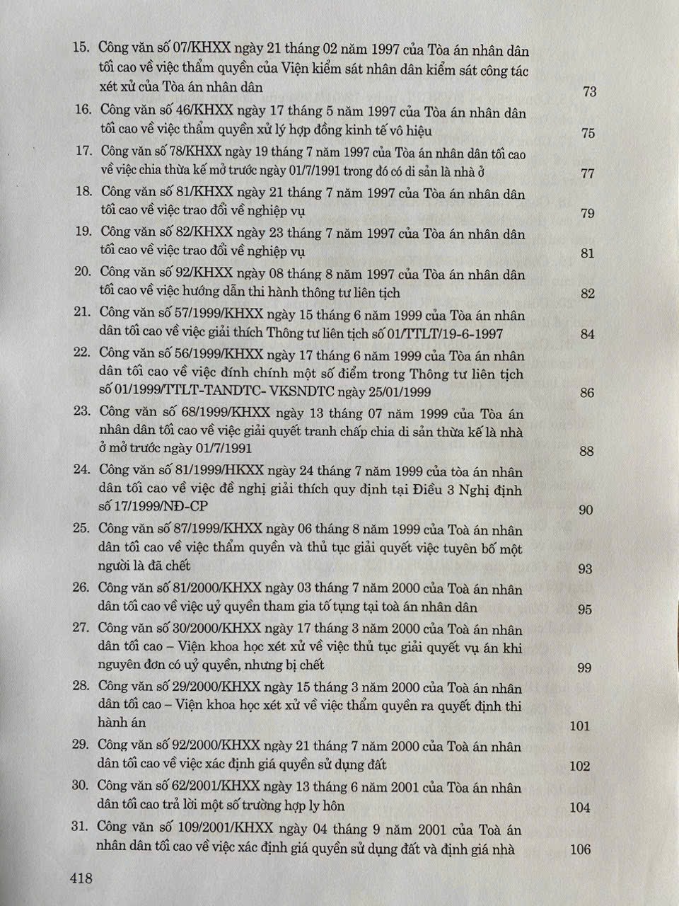 Hệ thống Công văn hướng dẫn nghiệp vụ của Tòa án nhân dân tối cao trong lĩnh vực Dân sự và Tố tụng Dân sự (từ năm 1986 đến năm 2023)