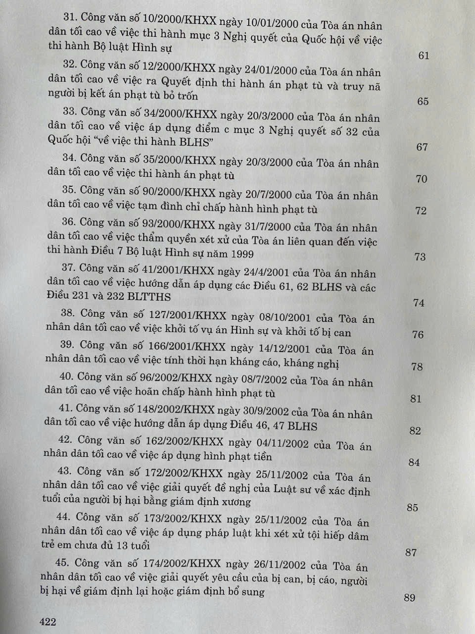 Hệ thống Công văn hướng dẫn nghiệp vụ của Tòa án nhân dân tối cao trong lĩnh vực Hình sự và Tố tụng Hình sự (từ năm 1987 đến năm 2023)