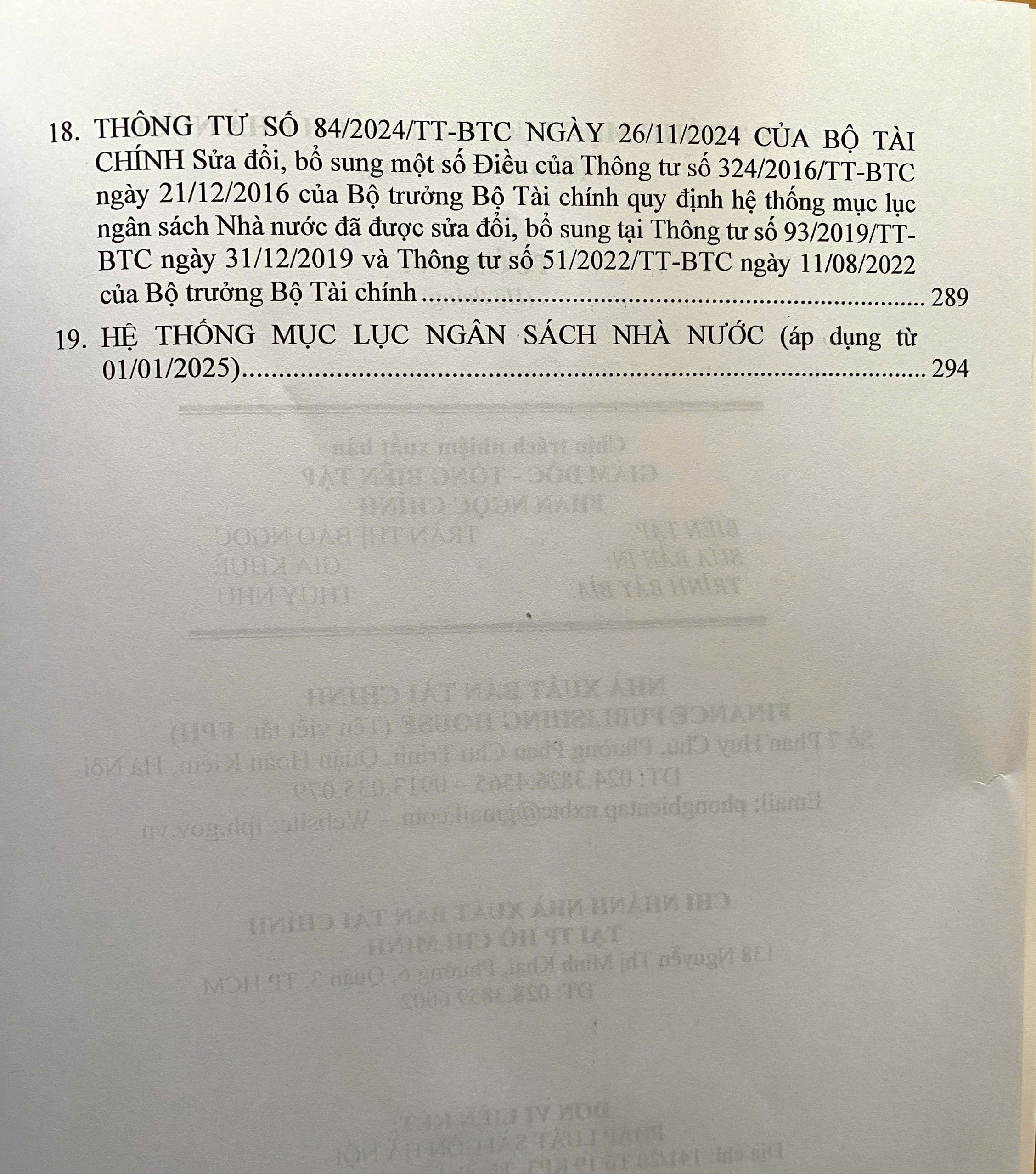 Phần thứ tư. HỆ THỐNG MỤC LỤC NGÂN SÁCH NHÀ NƯỚC ÁP DỤNG TỪ 01/01/2025
