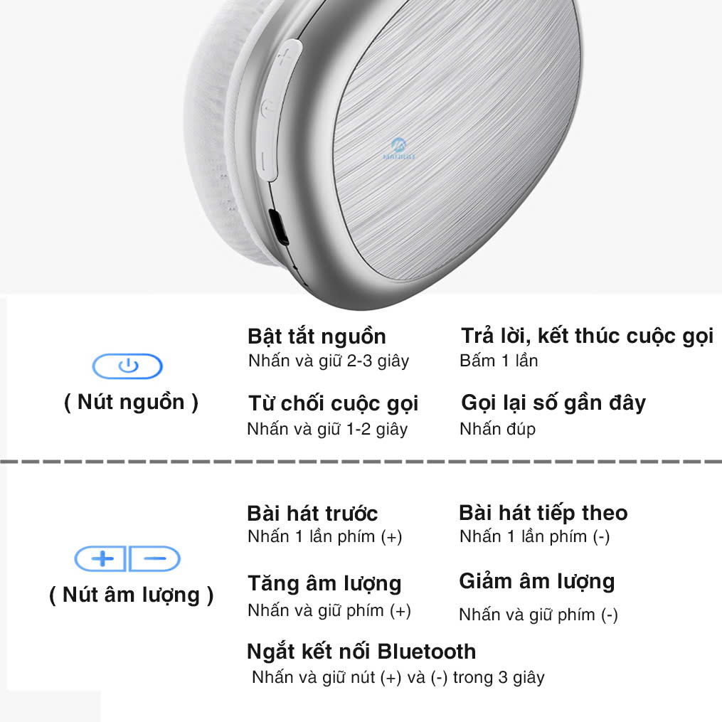 - Headphone tai nghe bluetooth chụp tai không dây Rockspace O5 được thiết kế các nút ấn trên tai nghe để dễ dàng điều chỉnh âm lượng, nghe gọi,.. THÔNG SỐ KỸ THUẬT: