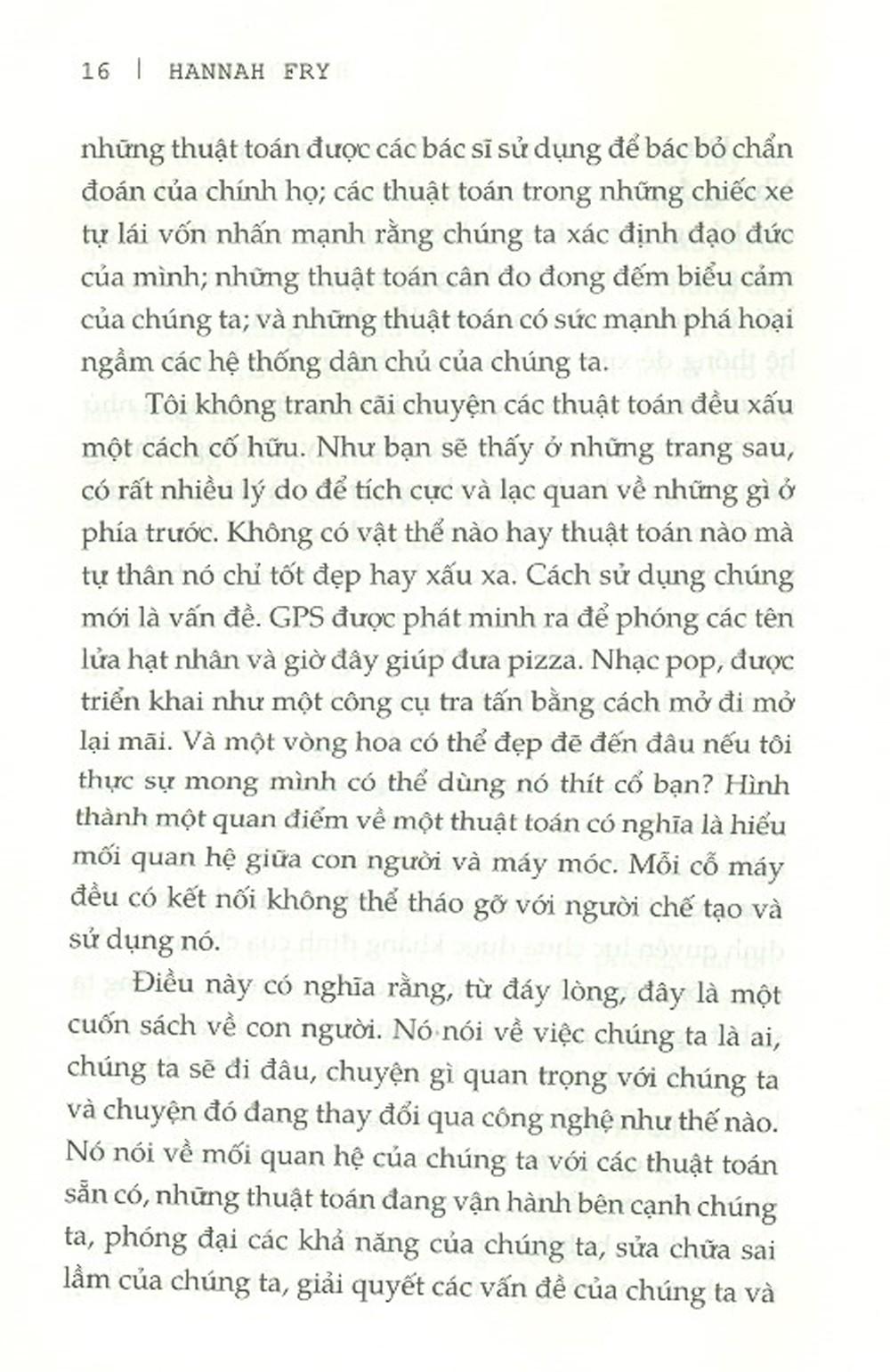 Cuốn sách này khám phá những mảng mênh mông nơi các thuật toán đang len lỏi vào nhiều khía cạnh của đời sống xã hội, chính trị, kinh tế của con người. Thuật toán được cảnh sát sử dụng để quyết định xem nên bắt ai. Thuật toán được các tòa án sử dụng để đưa ra phán quyết. Thuật toán được các bác sĩ dùng để bác bỏ chẩn đoán của chính họ. Thuật toán cân đo đong đếm biểu cảm của con người. Thuật toán có sức mạnh phá hoại ngầm với các hệ thống nhà nước dân chủ