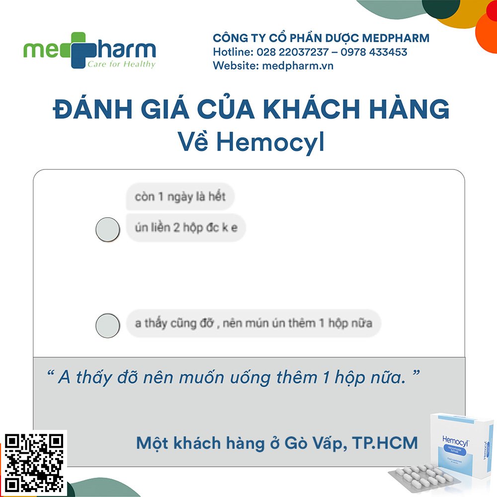 ✨Hemocyl-TPBVSK: Giải pháp đột phá trong quản lý bệnh trĩ mà không cần phẫu thuật-Hỗ trợ cải thiện triệu chứng: đau rát, ngứa, chảy máu khi đi ngoài do trĩ. Ức chế sự phát triển vi sinh vật giúp hỗ trợ cải thiện nguy cơ nhiễm trùng thứ phát tại búi trĩ.