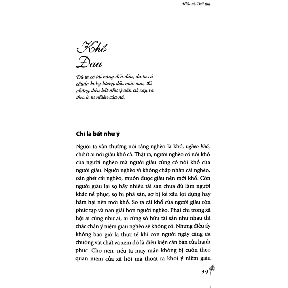 Hiểu về trái tim là thái độ trở về tiếp nhận và làm mới lại tâm hồn mình. Bởi hiểu được chính mình, ta sẽ dễ dàng hiểu được người khác, để ta có thể thương nhau chân thật.