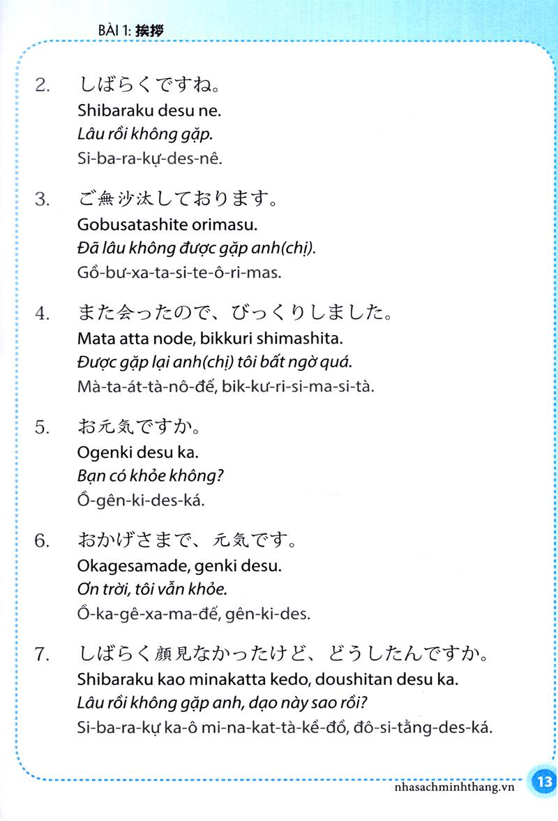 Sách gồm 15 chủ đề phổ biến nhất trong cuộc sống hằng ngày, có phần phiên âm bồi và kèm theo cả CD phát âm của người bản xứ chắc chắn sẽ vô cùng dễ học và hiệu quả, phù hợp với cả những đối tượng lần đầu tiếp xúc với tiếng Nhật.