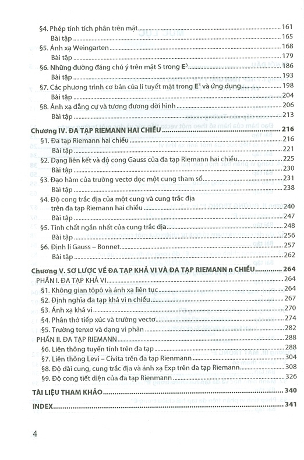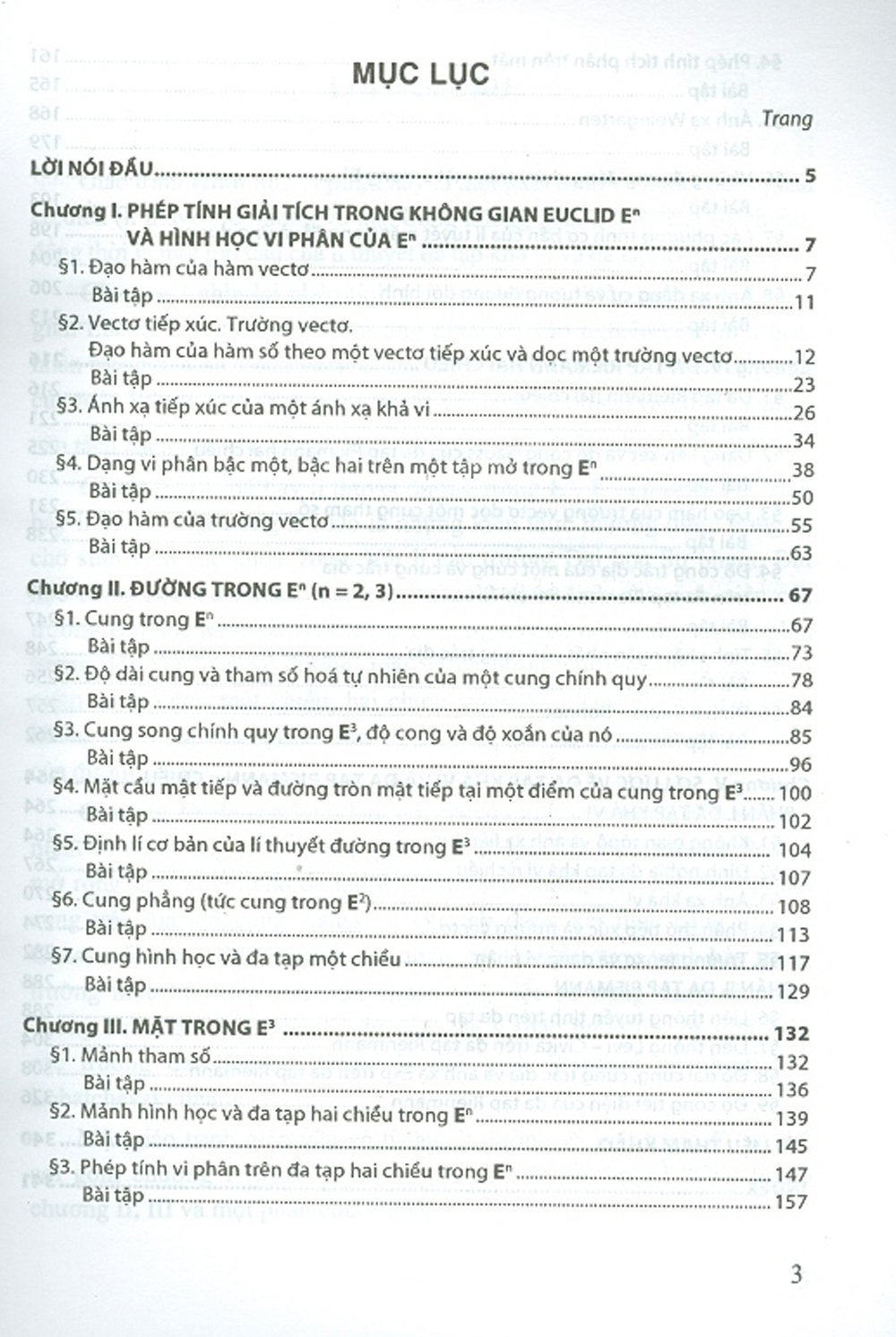 Một giáo trình giản yếu về lí thuyết đường và mặt trong E có thể coi gồm chương I (trình bày đơn giản, coi là ôn tập về “Giải tích”) chương II, III và một phần chương IV.