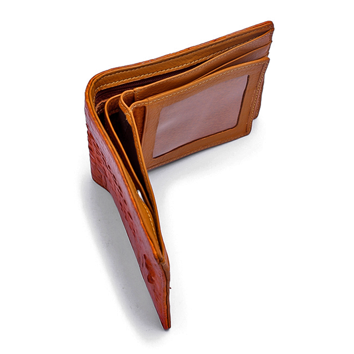 - Ví nam được làm bằng chất liệu da cá sấu cao cấp tạo kiểu dáng lạ mắt, sang trọng. - Thiết kế nhỏ gọn, thời trang, dạng ví nam xếp đôi, có nhiều ngăn