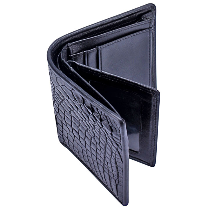 ✨HJ2228 - Bóp nam Huy Hoàng da cá sấu kiểu đứng màu đen