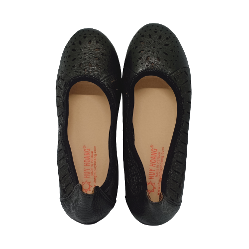 Giày nữ hoa văn Huy Hoàng da bò màu đen 7951