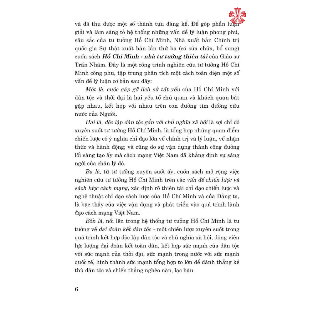 Với số lượng hơn 600 trang, được trình bày khoa học, logic, cuốn sách Hồ Chí Minh - Nhà Tư Tưởng Thiên Tài của giáo sư Trần Nhâm chứa đựng một khối lượng tri thức đồ sộ, cung cấp nhiều luận giải và những vận dụng thực tế trong giai đoạn hiện nay. Tư tưởng Hồ Chí Minh là tài sản tinh thần vô giá, sống mãi trong tâm khảm dân tộc Việt, là ngọn đuốc soi đường cho cuộc đấu tranh vì độc lập tự do, vì chủ nghĩa xã hội của nhân dân Việt Nam. Đặc biệt trong giai đoạn tình hình thế giới có nhiều diễn biến phức tạp như hiện nay, nghiên cứu và học tập tư tưởng Hồ Chí Minh càng cần được chú trọng và phát huy.