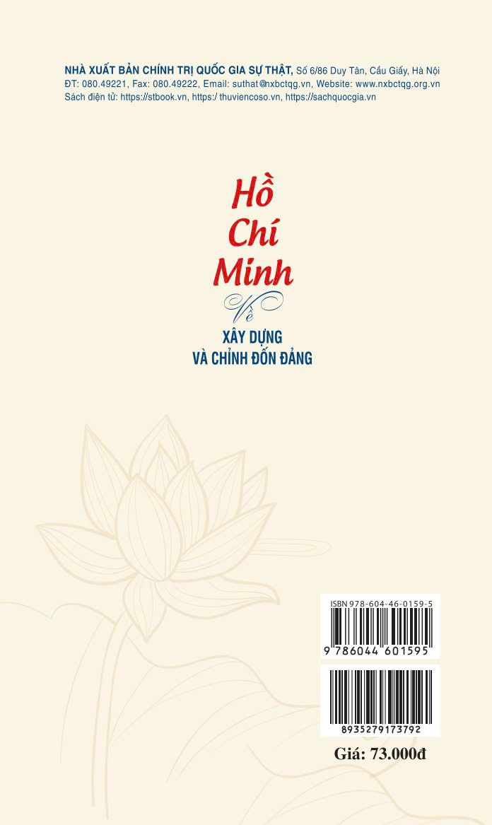 Mua tại TiktokNội dung cuốn sách “Hồ Chí Minh - Về xây dựng và chỉnh đốn Đảng” là những câu trích trong các bài nói, phát biểu, bài viết của Người được in trong bộ sách Hồ Chí Minh: Toàn tập và một số hình ảnh của Người với công tác xây dựng, chỉnh đốn Đảng được lưu tại Bảo tàn Hồ Chí Minh.