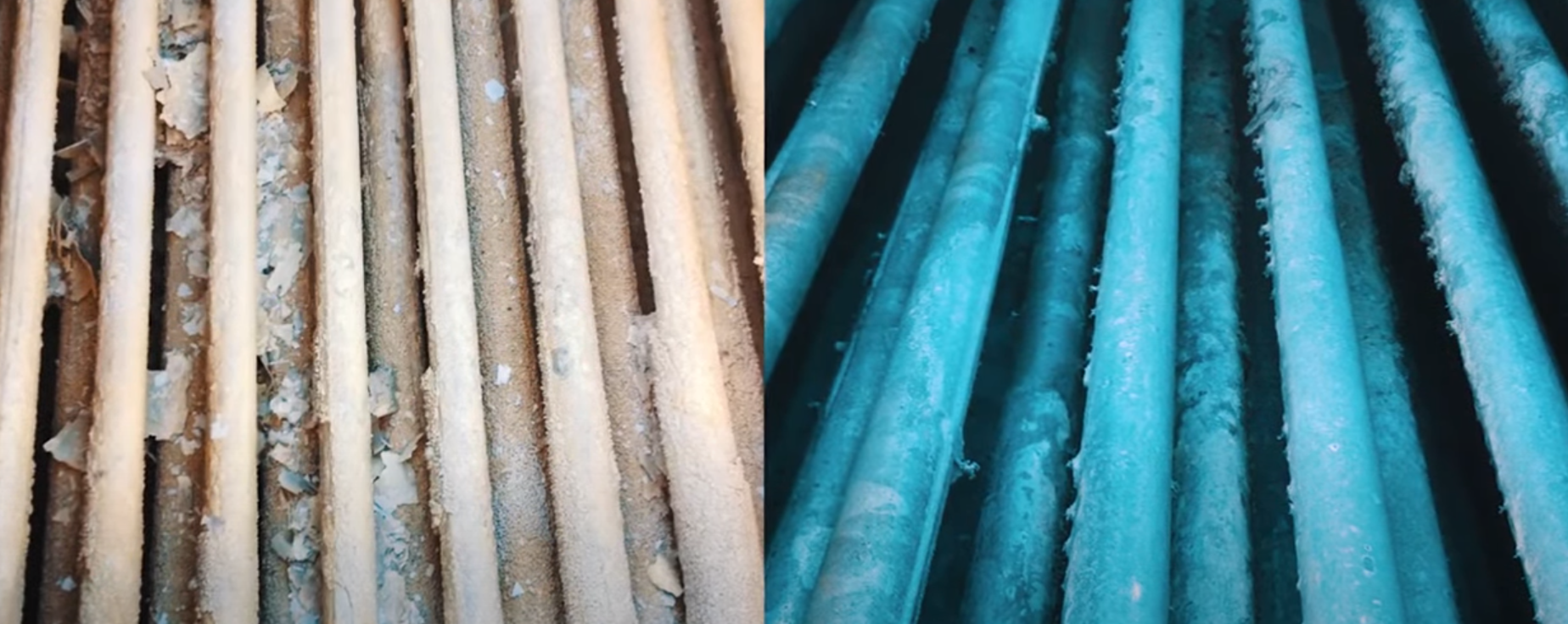 - Lò hơi, nồi hơi bị ăn mòn bởi các lớp cáu cặn dẫn đến đứt gãy, thủng, rách đường ống trong lò.