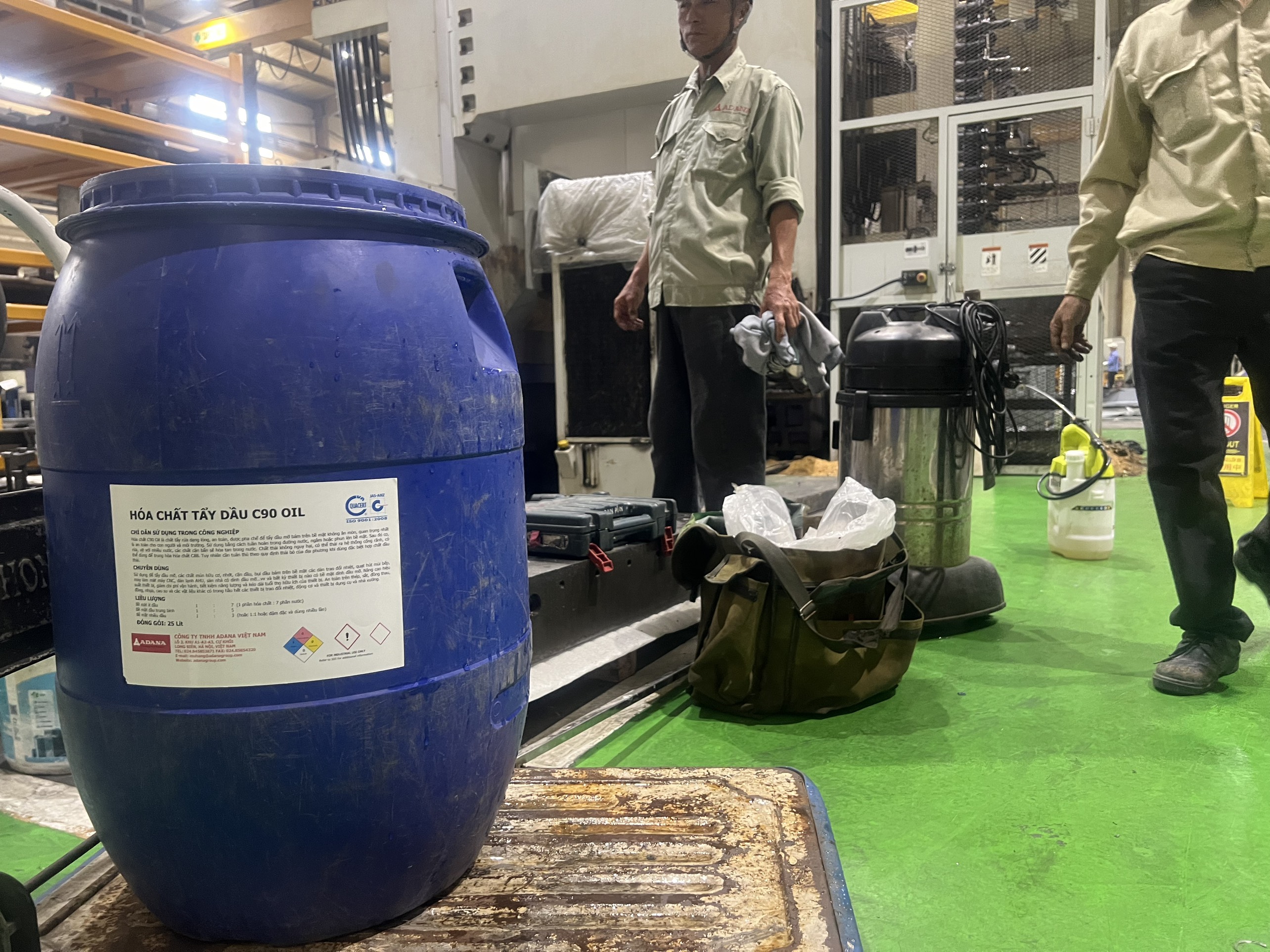Mua tại TiktokHóa chất tẩy dầu mỡ đa năng siêu sạch, an toàn, hàng chính hãng, giá rẻ C90 Tẩy sạch, an toàn với tất cả các bề mặt, vật liệu như sắt thép, nhôm đồng, nhựa, cao ặt sàn nhà bếp, công xưở An toàn với con người và môi trường Cách sử dụng: Liều lượng: Bề mặt ít dầu 1 : 7 (1 phần hóa chất : 7 phần nước) Bề mặt dầu trung bình 1 : 5 Bề mặt nhiều dầu 1 : 3 (hoặc 1:1 hoặc đậm đặc và dùng nhiều lần đến khi sạch) ĐÓNG GÓI: 25 Lít (~30Kg)