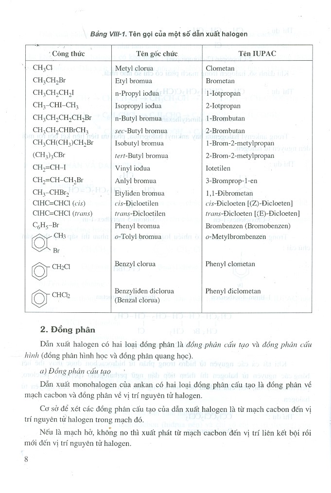 Mỗi chương có thể chia thành nhiều bài. Trong mỗi chương hoặc mỗi bài, các tác giả trình bày theo hệ thống: Đồng phân và danh pháp, các phương pháp điều chế, tính chất vật lí, tính chất hoá học, giới thiệu một số hợp chất tiêu biểu và ứng dụng.