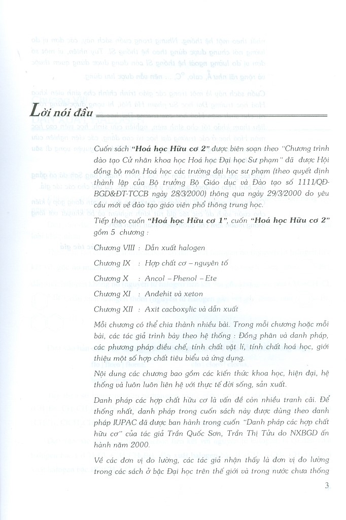 Cuốn sách “Hoá hoc Hữu cơ 2” được biên soạn theo “Chương trình đào tạo cứ nhân khoa học Hoá học Đại học Sư phạm” đã được Hội đồng bộ môn Hoá học các trường đại học sư phạm thông qua ngày 29/3/2000 do yêu cầu mới về đào tạo giáo viên phổ thông trung học.
