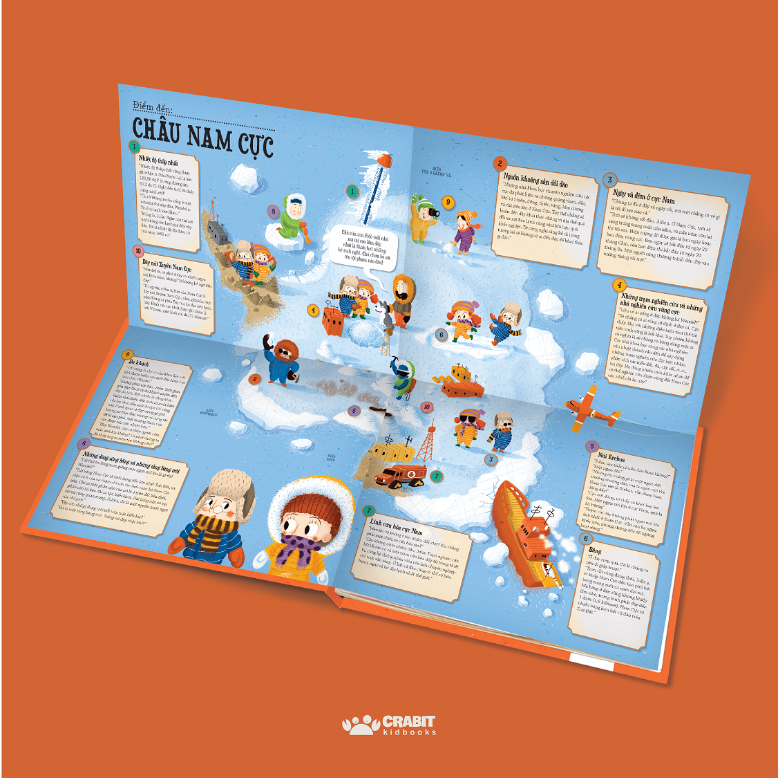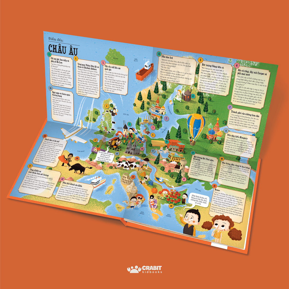 Với những cô nhóc cậu nhóc hay tò mò, muốn khám phá thế giới bao la ngoài kia thì bộ sách “Hỏa xa phiêu lưu ký” đích thực là một kho báu! Bộ sách sẽ mời trẻ bước lên chuyến tàu hỏa độc nhất vô nhị, đưa trẻ chu du vòng quanh thế giới và mỗi lần dừng chân là trẻ đang ở một lục địa mới. Tại mỗi trạm dừng, trẻ sẽ được “cấp cho” một chiếc bản đồ lật mở khổng lồ, đóng vai trò như một “hướng dẫn viên du lịch” giúp trẻ tìm tòi và khám phá những điều vô cùng hay ho ở châu lục đó. Chẳng hạn khi đặt chân đến châu Âu, trẻ sẽ biết được Phần Lan là “đất nước có nhà tắm hơi còn nhiều hơn cả ô tô”, biết được cây cầu dài nhất thế giới nối liền hai quốc gia là Đan Mạch và Thủy Điển, biết được thiên nga trắng là một trong những loài chim nặng nhất thế giới (có em nặng đến 12 kg lận đó). Các thông tin về địa lý, văn hóa, món ăn truyền thống, động vật đặc hữ ở từng châu lục được chọn để giới thiệu với trẻ đều là những thông tin mới mẻ, thú vị, đảm bảo đưa trẻ đi từ bất ngờ này đến bất ngờ khác và không thể dừng chuyến hành trình tàu hỏa đặc biệt này được một khi đã bước chân lên tàu!