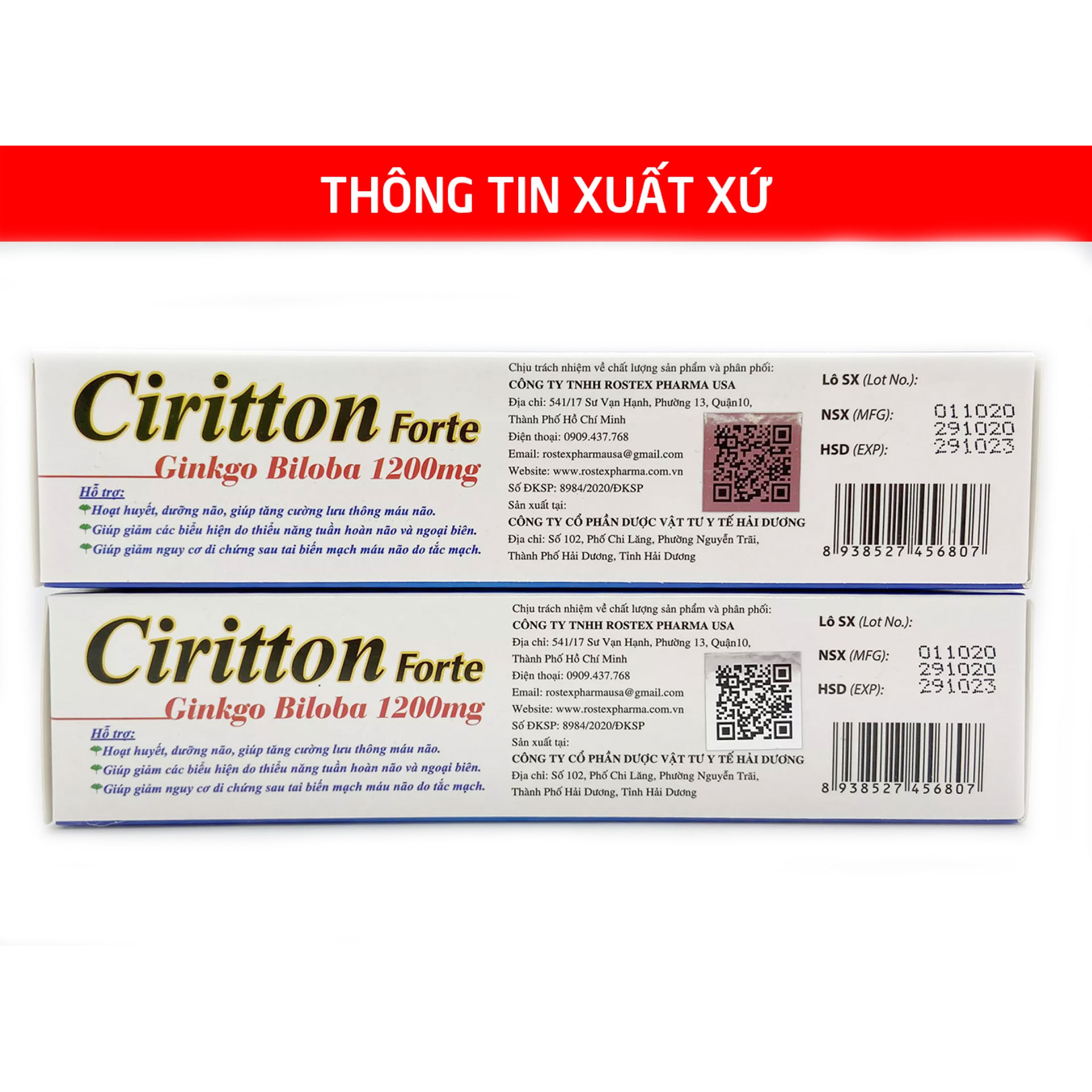 - Tạo giấc ngủ ngon, giúp tinh thần sảng khoái & tăng hiệu quả làm việc Hoạt huyết dưỡng não Ciritton Forte Ginkgo Biloba 1200mg Hộp 30 viên HƯỚNG DẪN SỬ DỤNG CIRITTON FORTE