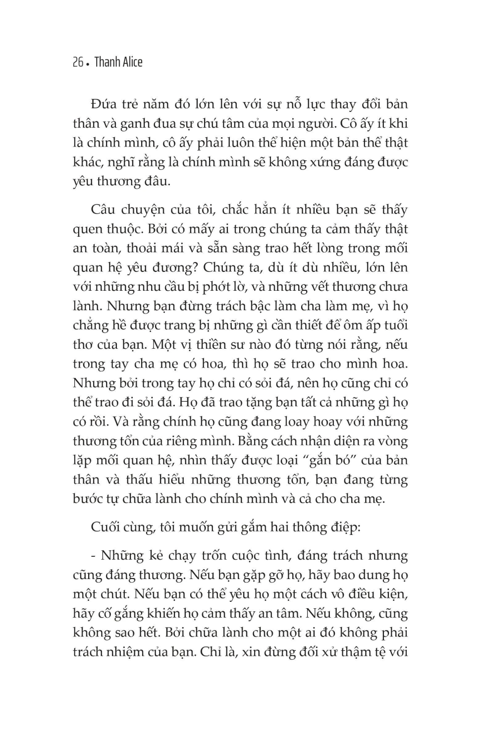 Học Thương Mình Giữa Muôn Vàn Vụn Vỡ - 1/5 Giây Để Rung Động Với Chính Mình Giới thiệu tác giả: Thạc sĩ giáo dục Thanh Alice Chuyên gia Khai Vấn đang hỗ trợ hàng nghìn phụ nữ trẻ vun bồi nội tâm, trí tuệ và chạm tới phiên bản rạng rỡ nhất của mỗi người. Đôi nét về tác giả Thanh Alice: