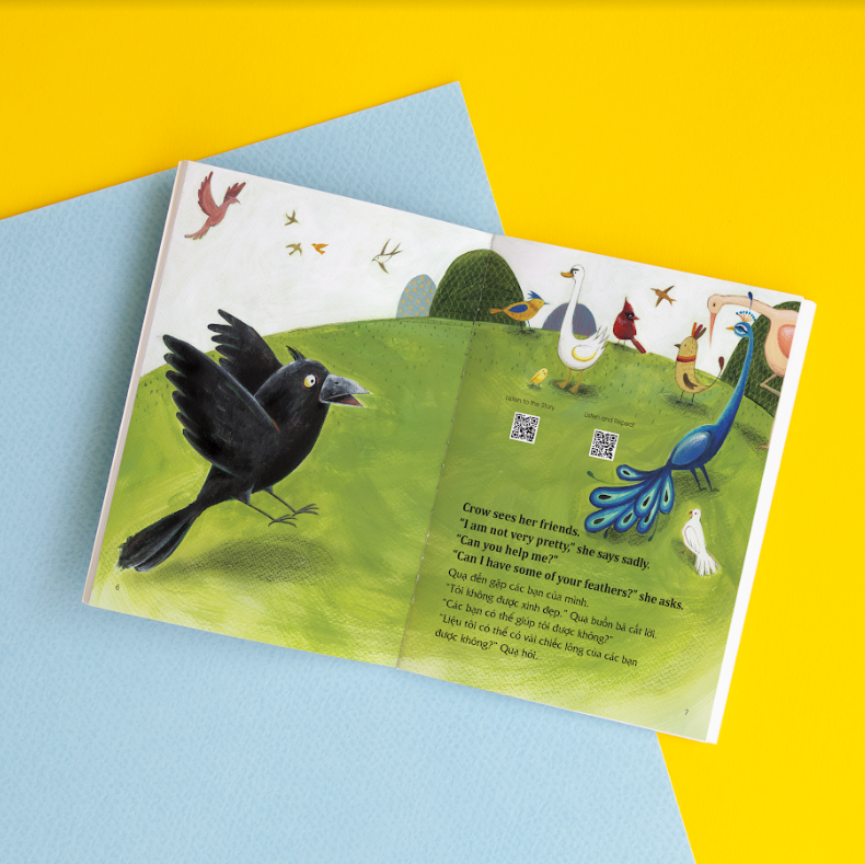 Hình thức song ngữ Anh – Việt với câu từ dễ hiểu, ngắn gọn giúp bé làm quen với tiếng Anh qua những câu chuyện. Đặc biệt phần tranh minh họa vô cùng sống động đi kèm với file nghe được tặng kèm trong từng trang sách giúp cho việc học tiếng Anh trở nên lôi cuốn và lấp lánh niềm vui với ngôn ngữ