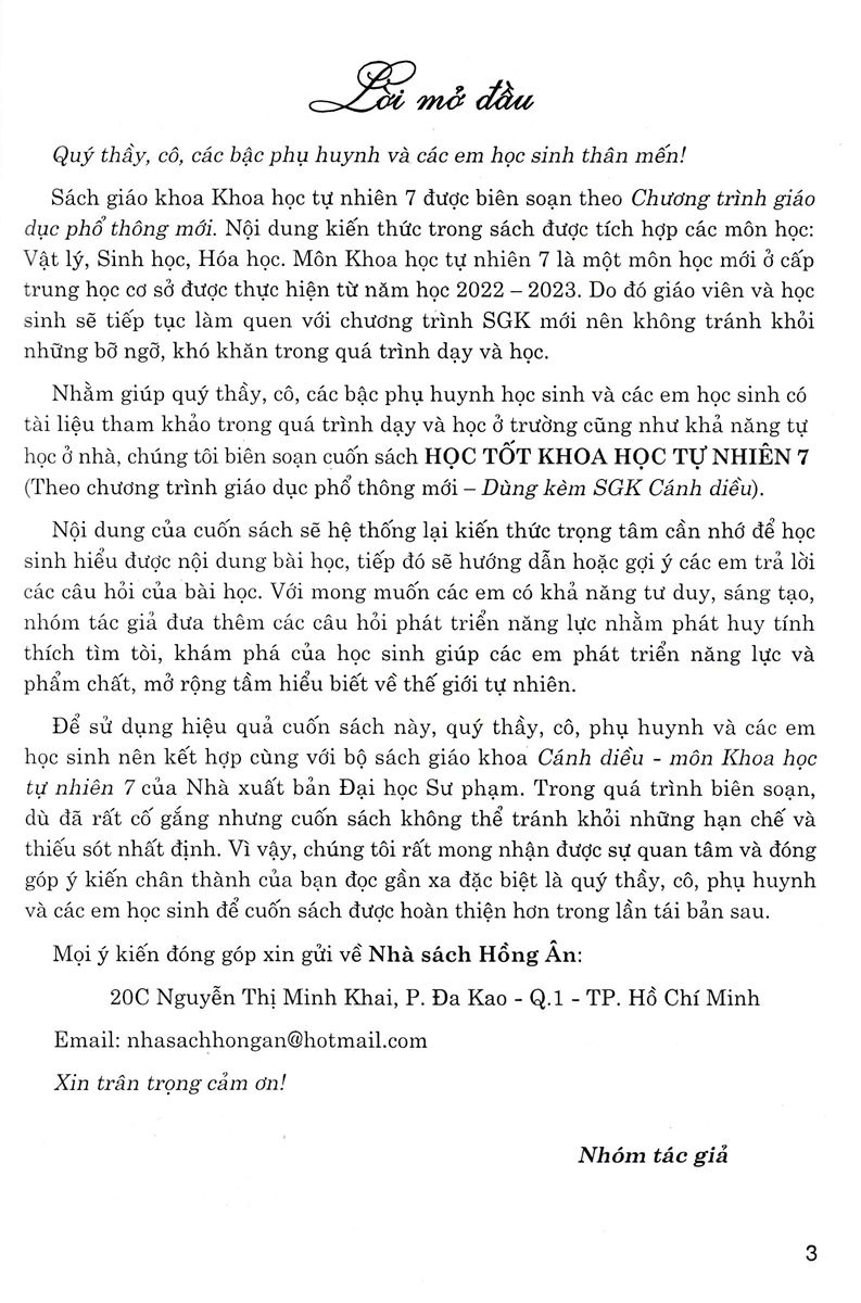 Để sử dụng hiệu quả cuốn sách này, quý thầy, cô, phụ huynh và các em học sinh nên kết hợp cùng với bộ sách giáo khoa Cánh diều - môn Khoa học tự nhiên 7 của Nhà xuất bản Đại học Sư phạm.