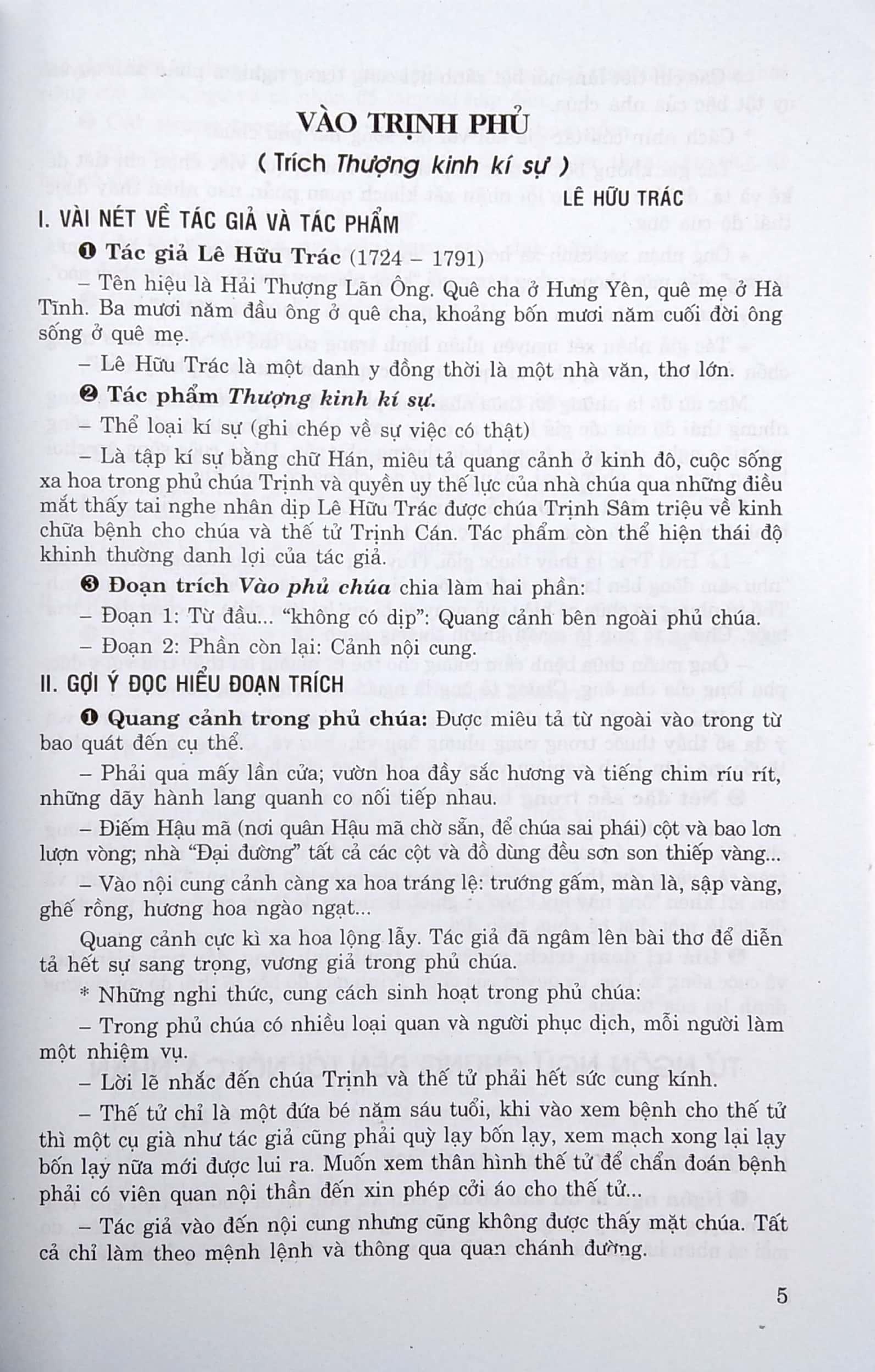 Sách được trình bày theo từng bài, từng phần trong toàn bộ năm học, định hướng các em trả lời câu hỏi một cách ngắn gọn, giản đơn, chính xác. Đồng thời, cuốn sách còn nhấn mạnh vào một số vấn đề, cung cấp một số tư liệu tham khảo tiêu biểu đề các em đào sâu, tạo văn phong lin hoạt. Tất cả nhằm gợi cho các em ý tưởng để phân tích, tìm hiểu, khám phá cái hay của tác phẩm.
