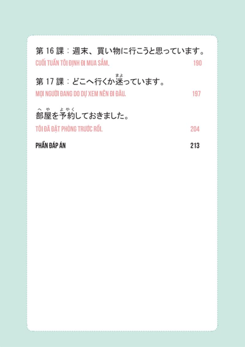 Với 18 bài học là từng chủ đề giao tiếp thông dụng nhất trong cuộc sống, cuốn “Học Từ vựng tiếng Nhật qua hội thoại giao tiếp” trước hết giúp bạn nắm được những từ vựng cơ bản nhất trong giao tiếp tiếng Nhật từ loại từ, ngữ nghĩa đến cách đọc theo file âm thanh (dùng kết hợp với app trên điện thoại), tiếp theo là giúp bạn hiểu, luyện tập và nâng cao khả năng sử dụng tiếng Nhật một cách hứng thú và hiệu quả qua các bài tập bổ trợ.