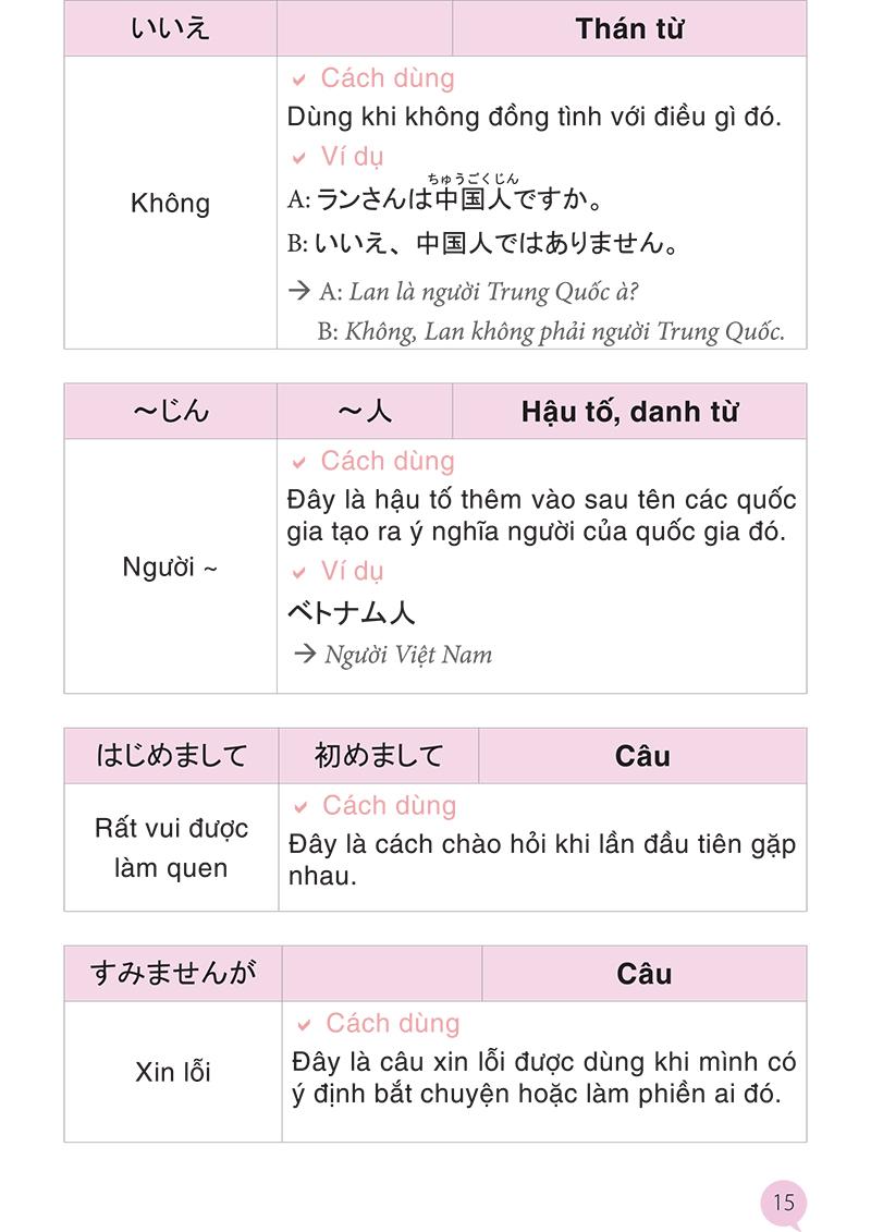 • Hướng dẫn cách sử dụng từ vựng tiếng Nhật vô cùng chi tiết với nhiều câu ví dụ tương ứng với các tình huống kèm theo hình ảnh minh họa sinh động