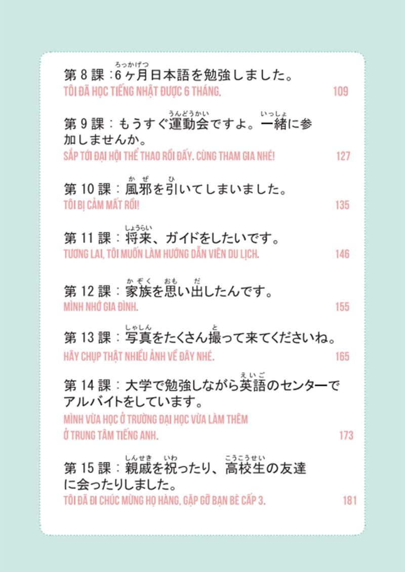 Hiểu được điều đó, ban biên soạn Saiwai kết hợp với chủ biên Hoàng Quỳnh đã dày Công nghiên cứu và biên soạn BỘ SÁCH DÀNH CHO NGƯỜI TỰ HỌC TIẾNG NHẬT tại nhà hoặc làm tài liệu tham khảo cho các bạn đang theo học các lớp tiếng Nhật. Bộ sách gồm có 4 cuốn: Hội thoại – Ngữ pháp - Từ vựng - Tập viết. Mỗi cuốn bao gồm 18 bài học cung cấp cho các bạn lượng kiến thức giao tiếp trong rất nhiều những tình huống quen thuộc của đời sống hàng ngày.