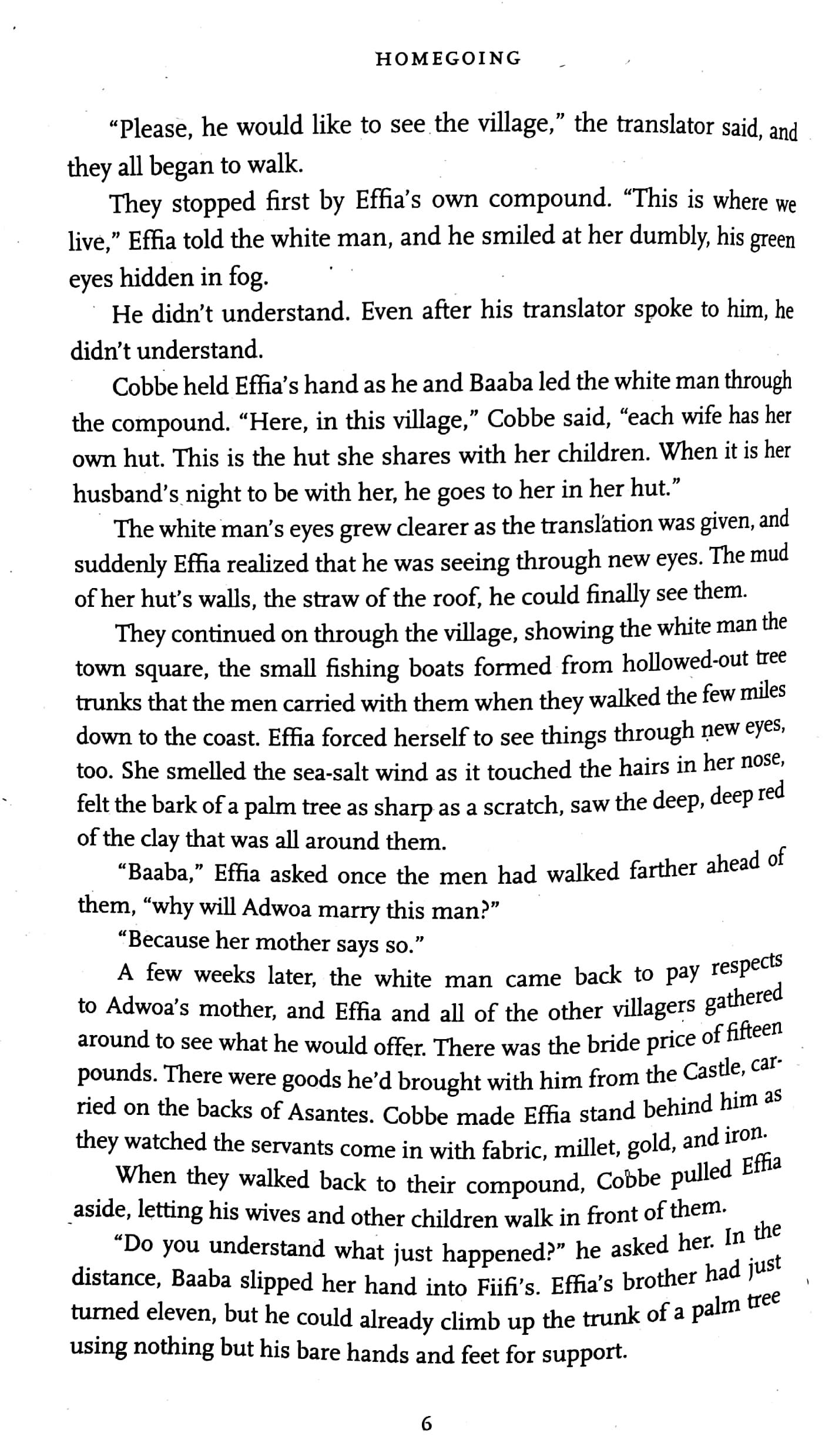 Effia and Esi are born into different villages in eighteenth-century Ghana. Effia is married off to an Englishman and lives in comfort in the palatial rooms of Cape Coast Castle. Unbeknownst to Effia, her sister, Esi, is imprisoned beneath her in the castle’s dungeons, sold with thousands of others into the Gold Coast’s booming slave trade, and shipped off to America, where her children and grandchildren will be raised in slavery. One thread of Homegoing follows Effia’s descendants through centuries of warfare in Ghana, as the Fante and Asante nations wrestle with the slave trade and British colonization. The other thread follows Esi and her children into America. From the plantations of the South to the Civil War and the Great Migration, from the coal mines of Pratt City, Alabama, to the jazz clubs and dope houses of twentieth-century Harlem, right up through the present day, Homegoing makes history visceral, and captures, with singular and stunning immediacy, how the memory of captivity came to be inscribed in the soul of a nation.