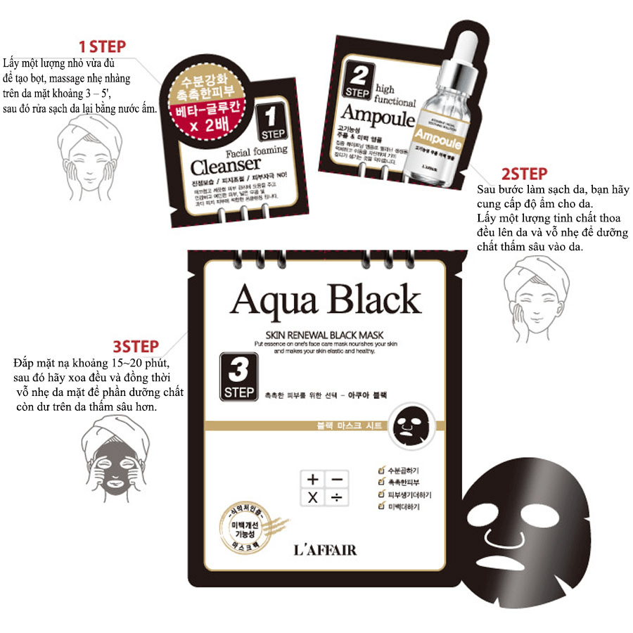 Mặt nạ kiềm dầu, dưỡng trắng, săn chắc da 3bước Rainbow L'affair Aqua Black