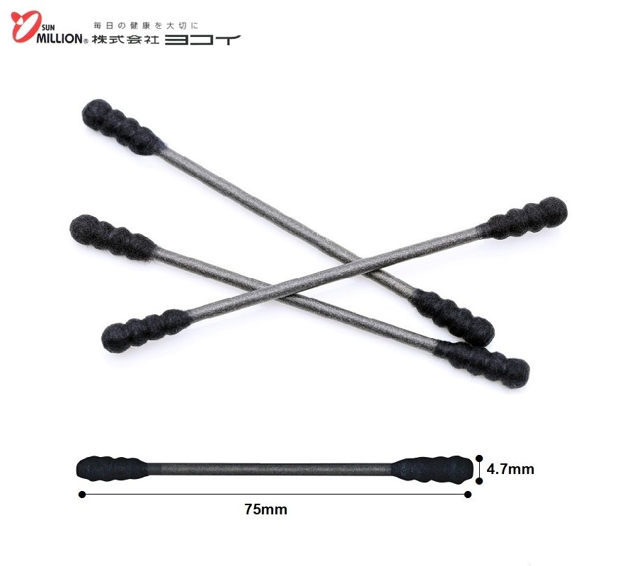 Hộp 110 tăm bông kháng khuẩn than hoạt tính Sanritsu, 100% bông gòn tự nhiên mềm mại không gây đau rát khi sử dụng - nội địa Nhật Bản