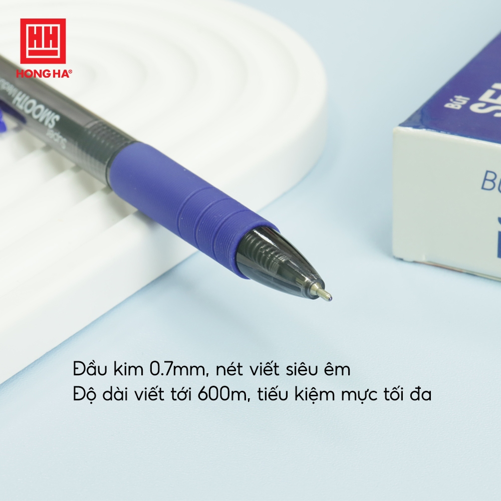 - Đặc điểm sản phẩm bút Semi Gel Hồng Hà 0,7mm 2600 Bút Semi Gel Hồng Hà 0.7mm 2600 được người tiêu dùng ưa chuộng bởi các đặc điểm nổi bật như: Thiết kế: Đầu bi 0.7mm được nhập từ Thụy Sĩ cho mực ra đều, nét viết trơn êm. Phần cổ bút thiết kế đệm cao su giúp giảm trơn trượt và cầm bút thoải mái hơn. Đặc biệt, dòng bút semi gel đột phá về công nghệ mực, kết hợp ưu điểm của bút bi và bút gel. Chất liệu: Thân bút được làm từ nhựa cao cấp, cho màu sắc tươi sáng hơn và đảm bảo độ bền của thân bút. Độ dài viết: Độ dài viết tối đa lên đến 450m. Nhờ vậy, bút có thể sử dụng lâu dài, giúp người dùng tiết kiệm tối đa chi phí.