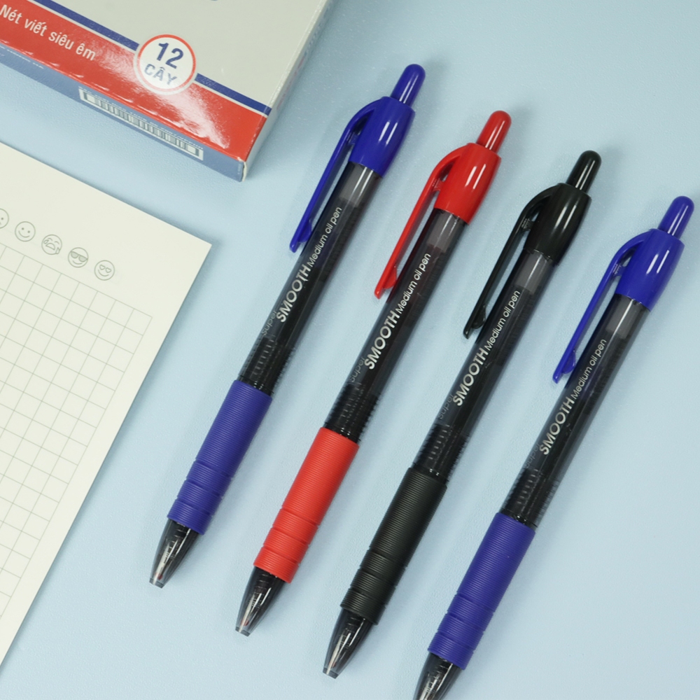 Mực gel siêu trơn: Bút được trang bị mực gel chất lượng cao, đảm bảo viết mượt mà, không bị tắc nghẽn, giúp bạn dễ dàng ghi chú hoặc viết lách mà không gặp khó