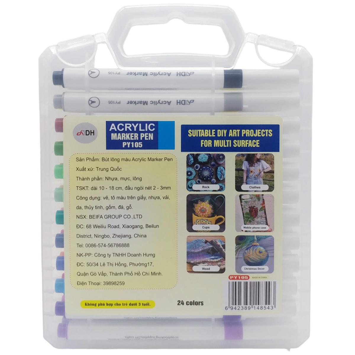 Mua tại TiktokHộp 24 Bút Lông Màu Acrylic Marker Pen - DH PY105