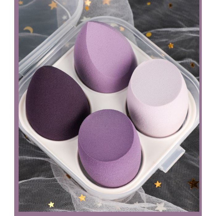 Set 4 Mút Trang Điểm Tán Phấn Giọt Nước Hộp Nhựa Vuông [BECO - BC1448]