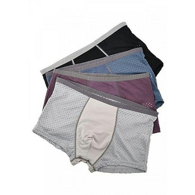 Quần lót nam thông hơi - HỘP 4 CHIẾC - Quần sịp đùi nam Hàng loại 1 Chất Liệu: Siêu mềm, siêu mịn, co giãn thoải mái, thông thoáng mát lạnh - Size XL :45-60kg