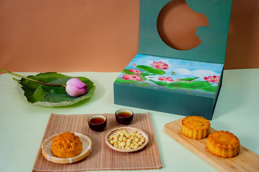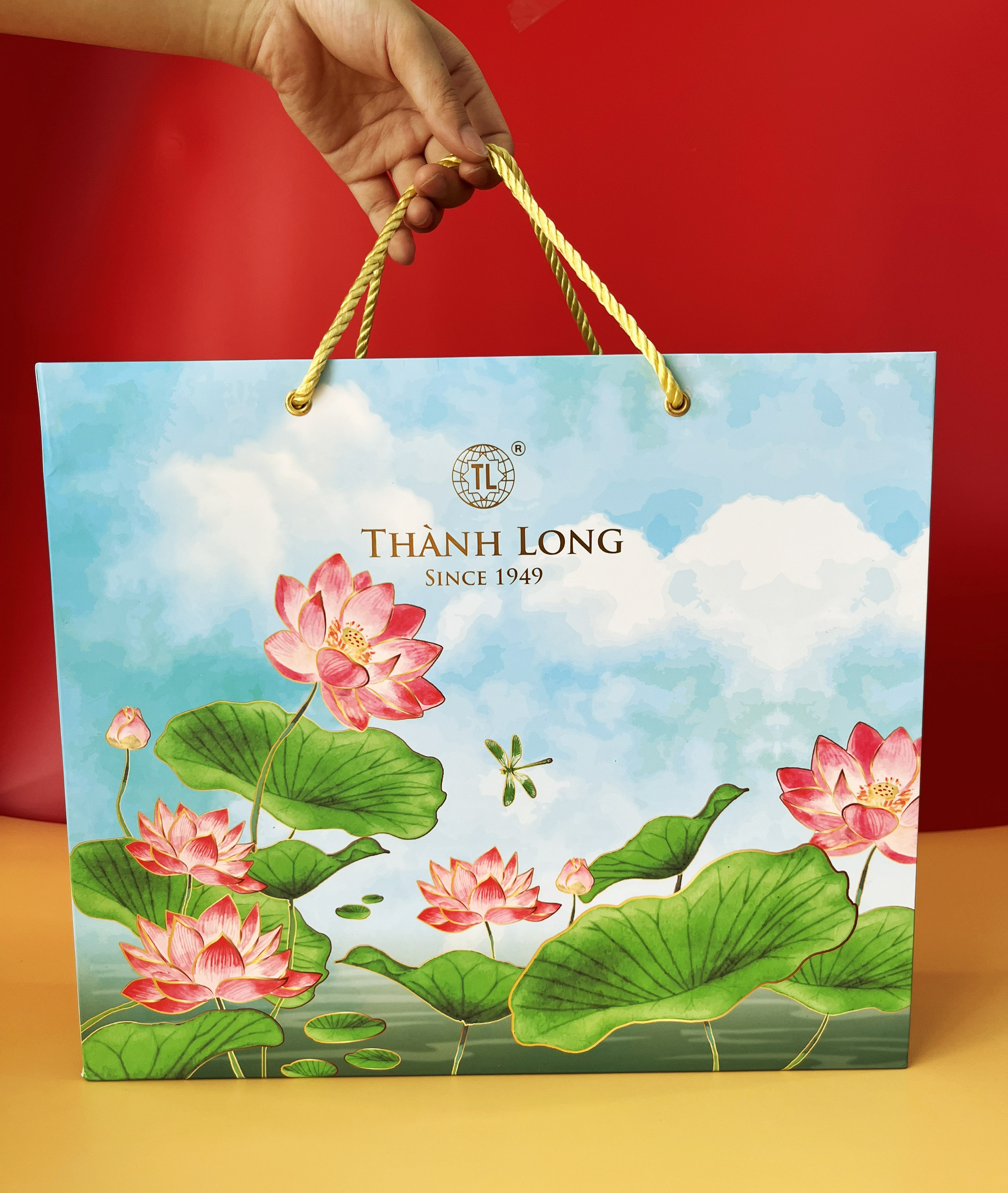 Hộp bánh trung thu 4 bánh chay 220g - Thành Long - Combo chay trăng/ chay 4 880g - Tặng 1 hộp trà