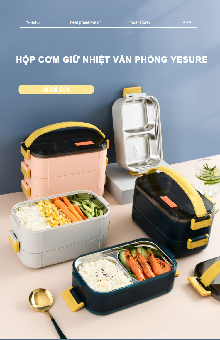 Hộp cơm giữ nhiệt văn phòng YESURE 1200ml Hai Tầng có ngăn Inox Tháo rời dễ dàng cho vào lò Vi Sóng Một số thông tin sản phẩm: _ Hộp cơm được làm chủ