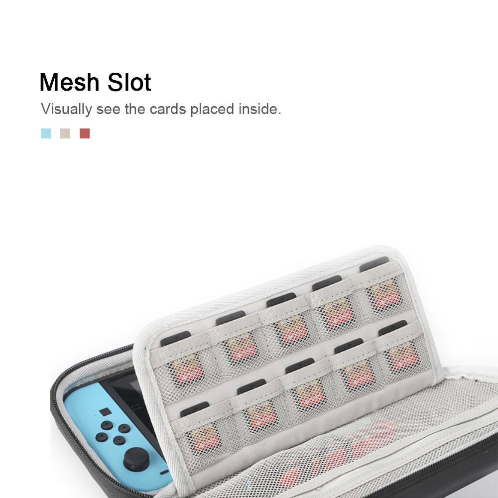 This storage bag is designed to store game console. It is made of EVA material. It has 10 game card slots and is convenient for carrying and can protect your digital console from scratches. Game