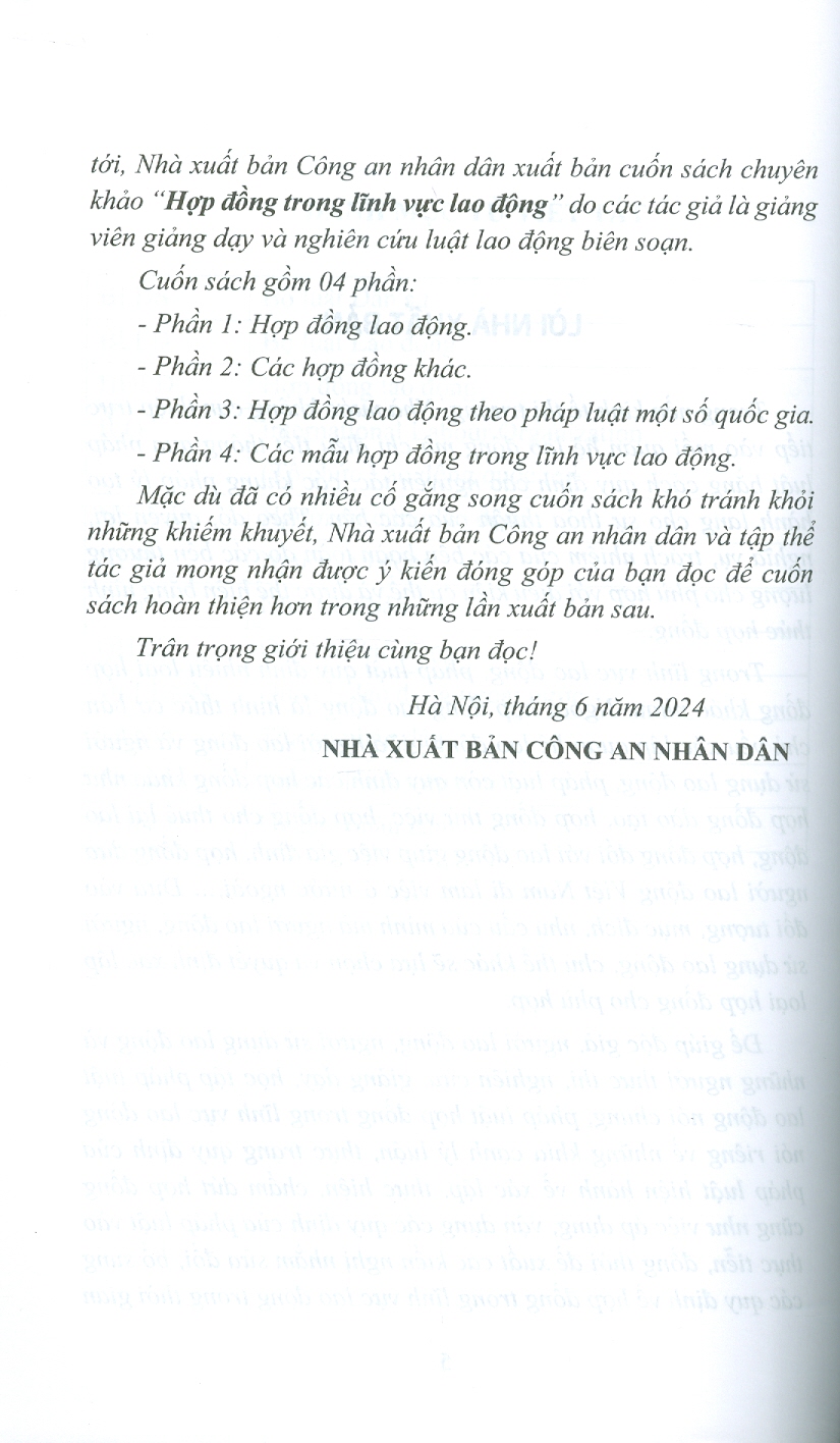 Hợp đồng trong lĩnh vực lao động Tác giả: PGS.TS. TRẦN THỊ THÚY LÂM - TS. ĐỖ THỊ DUNG Xuất bản năm: 2024 Công ty phát hành: Dân Hiền Số trang: 411 trang Khổ giấy: