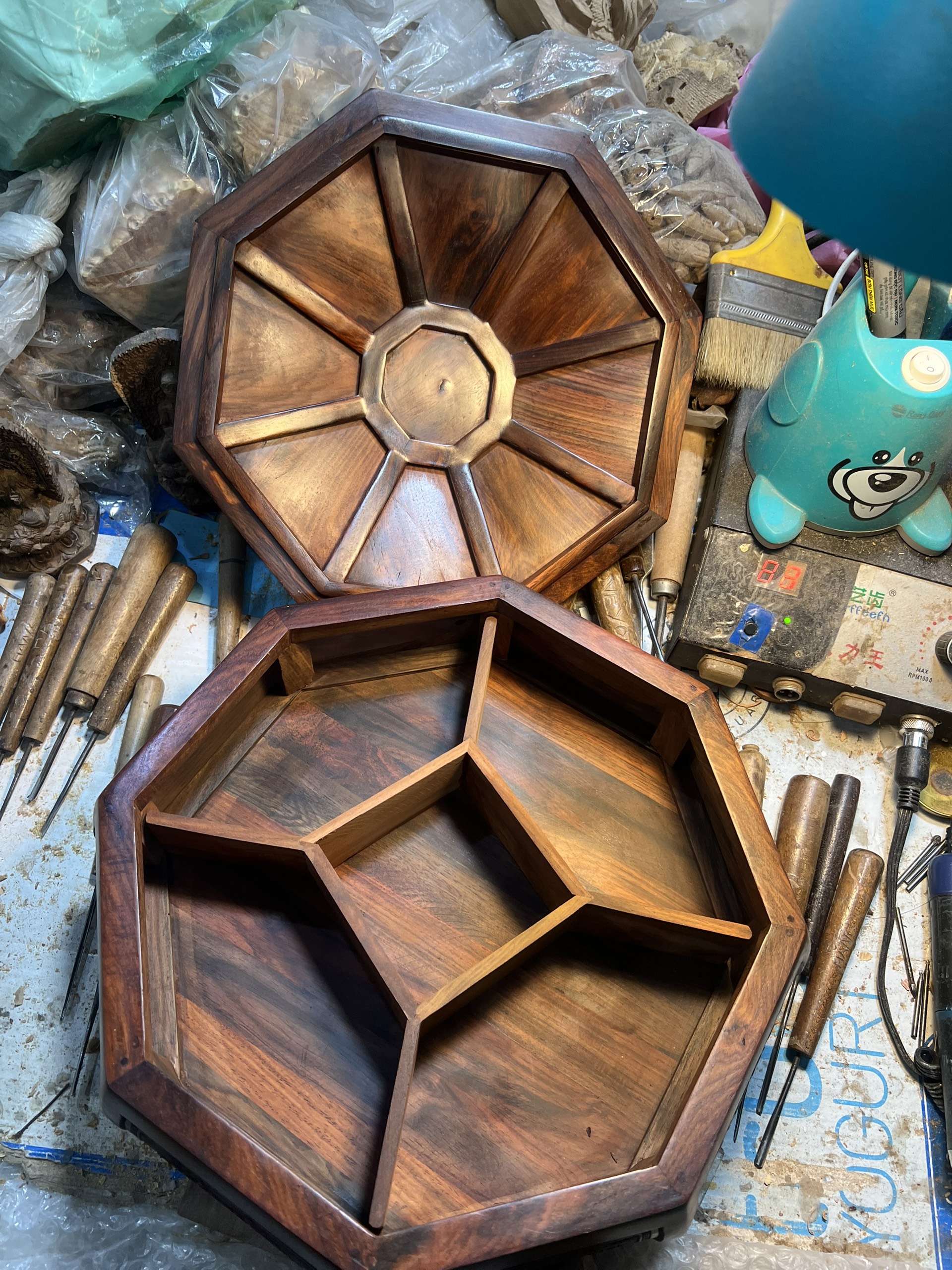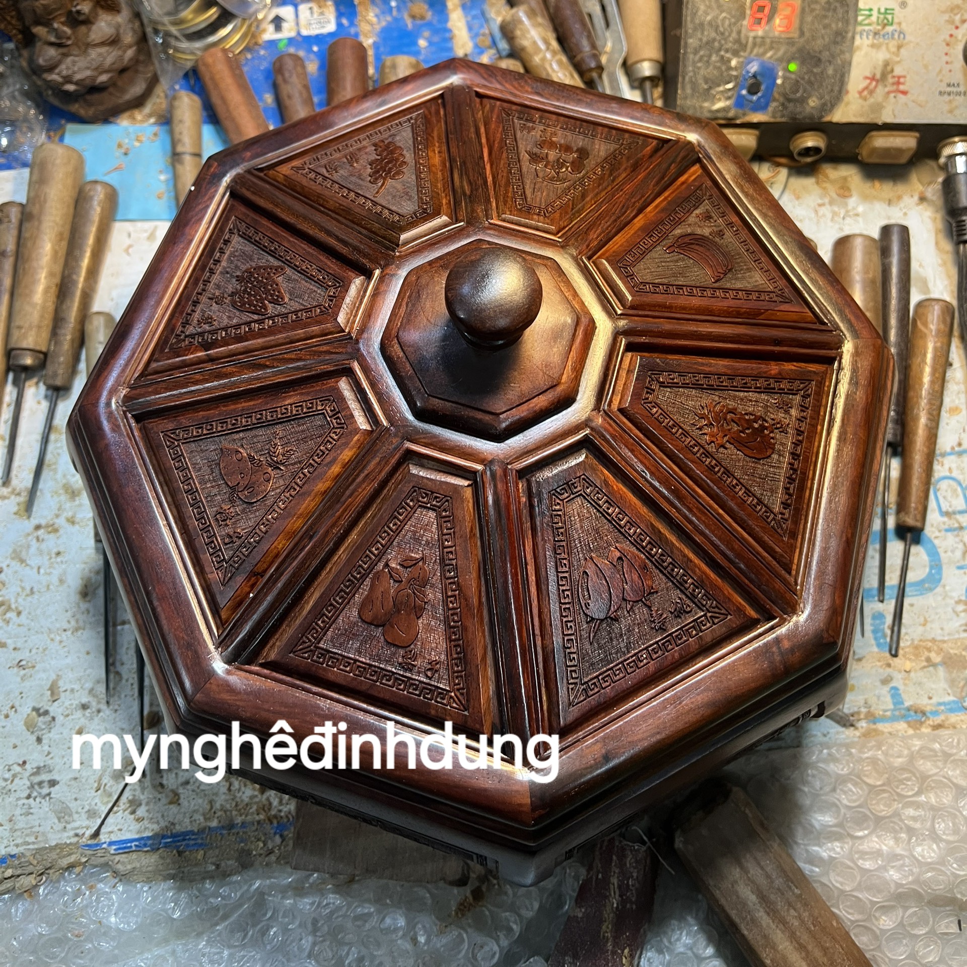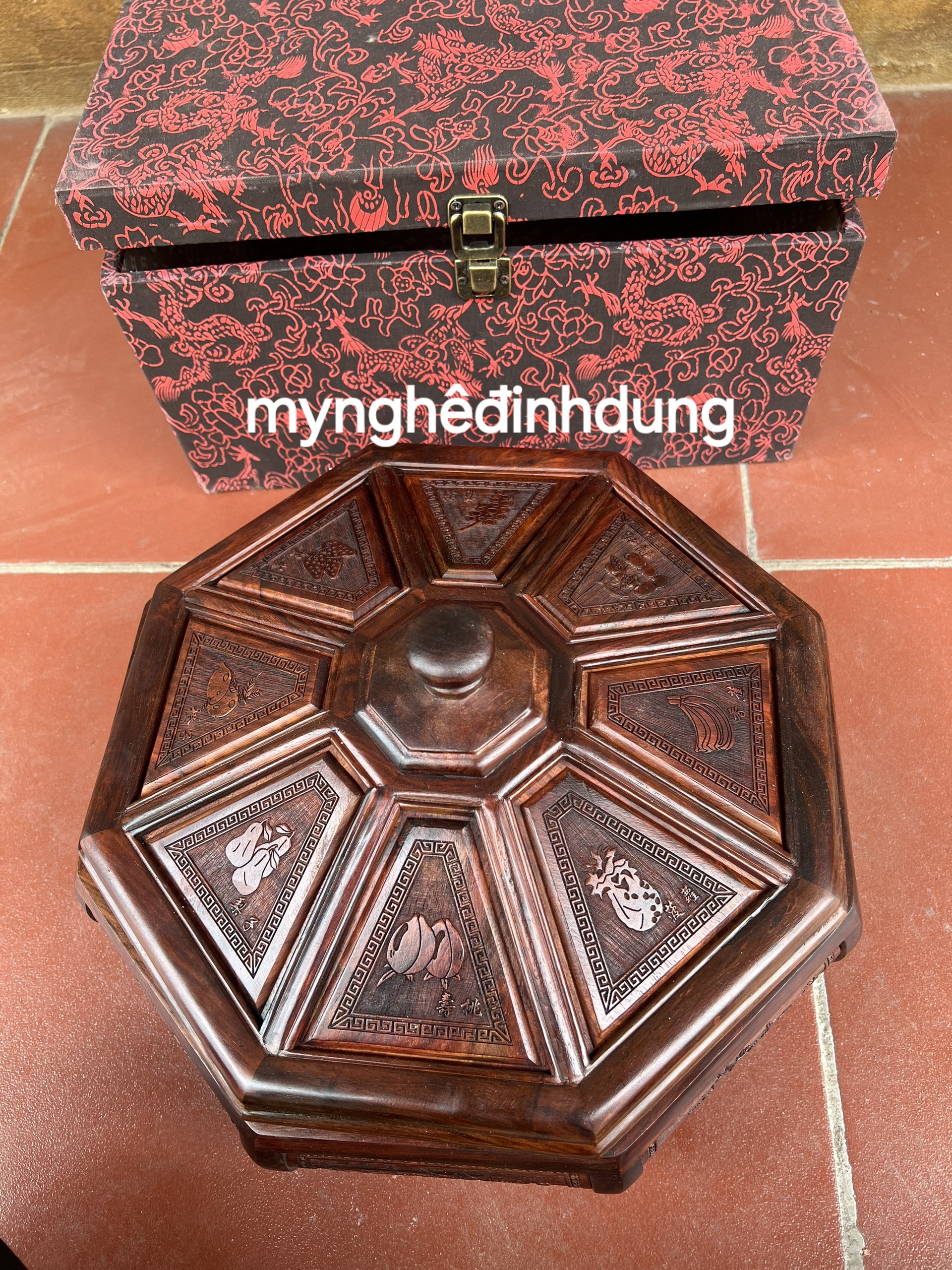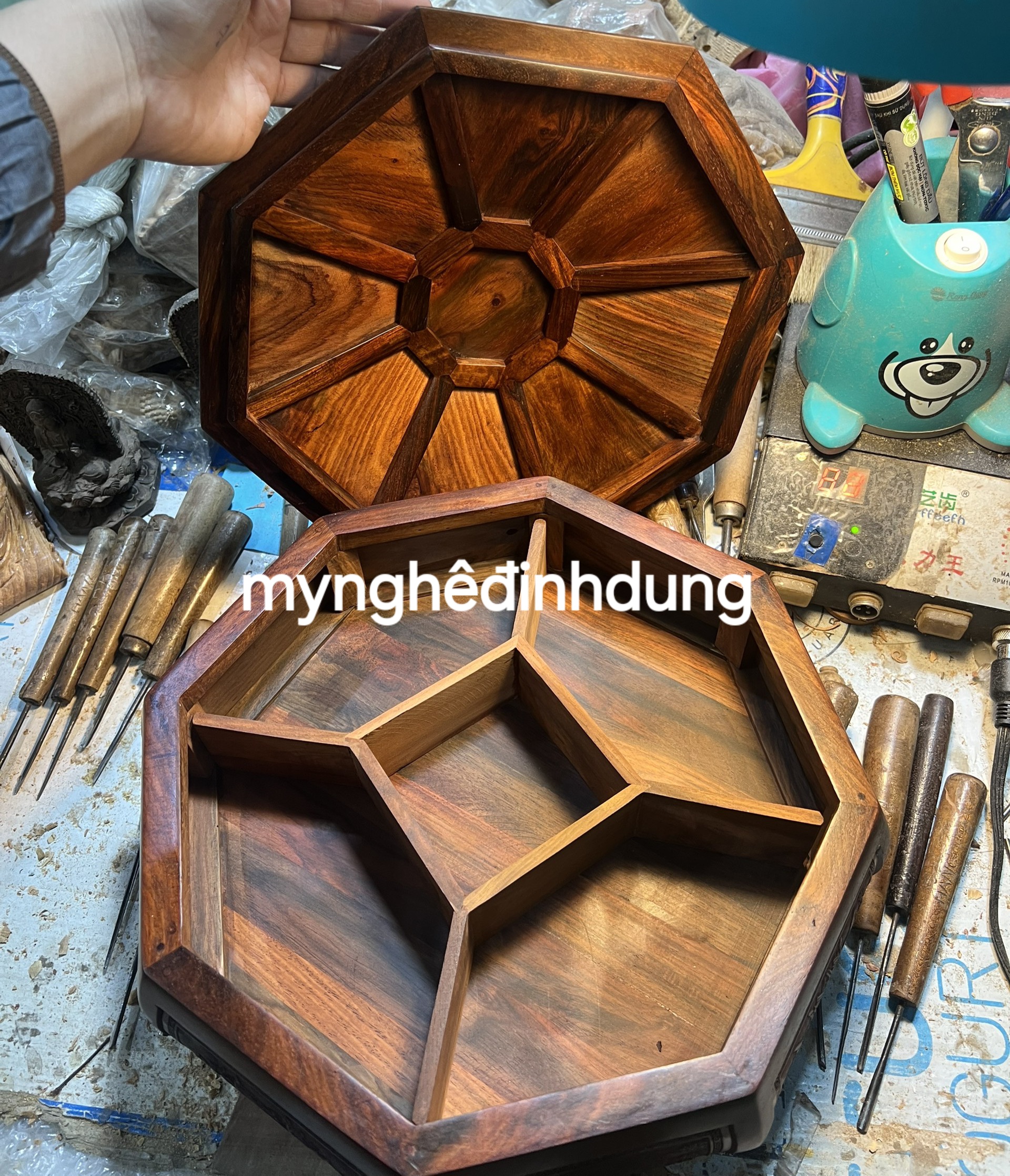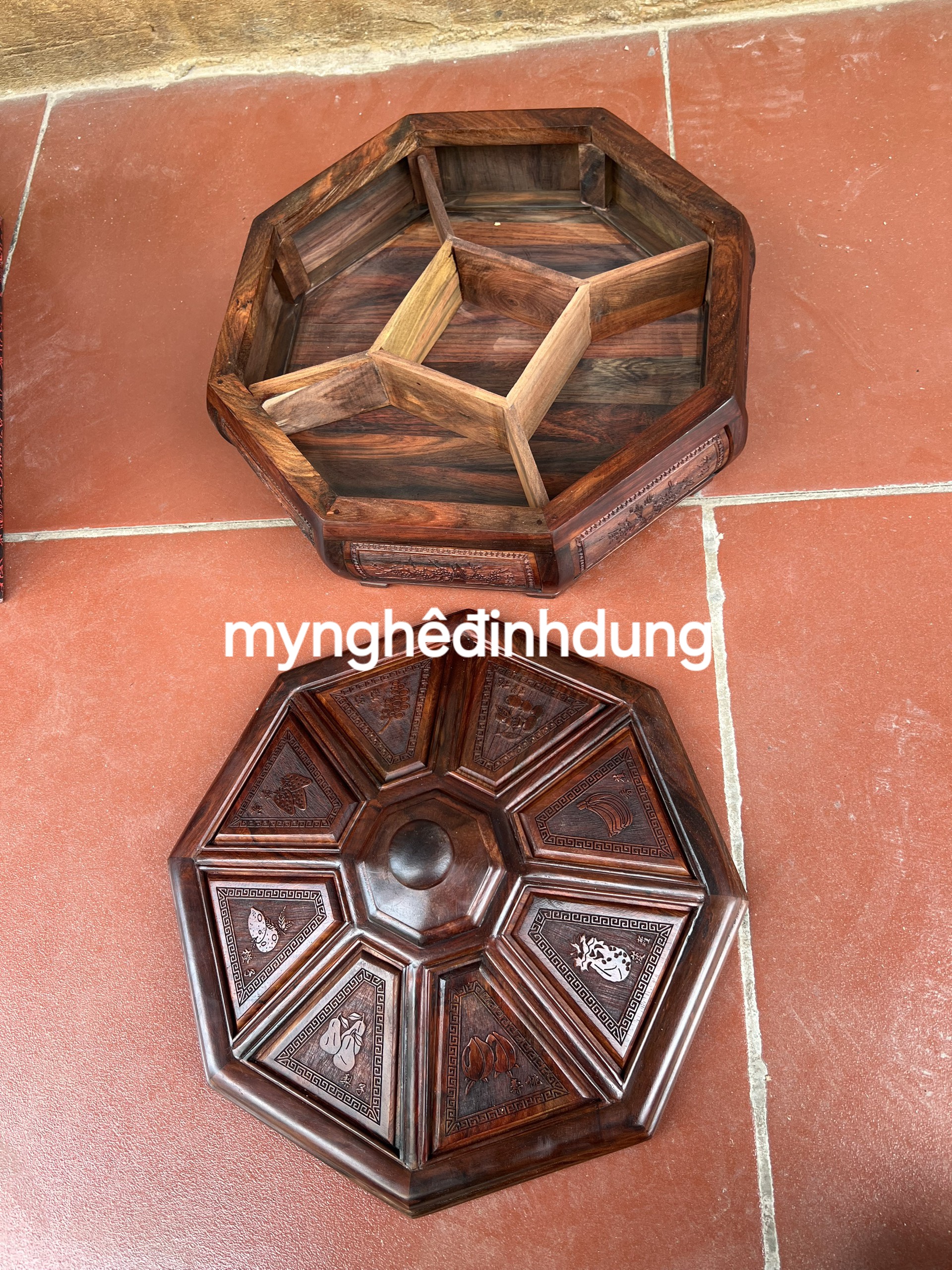 Khay để bánh kẹo tết gỗ trắc bát giác. ĐT: 0966221166