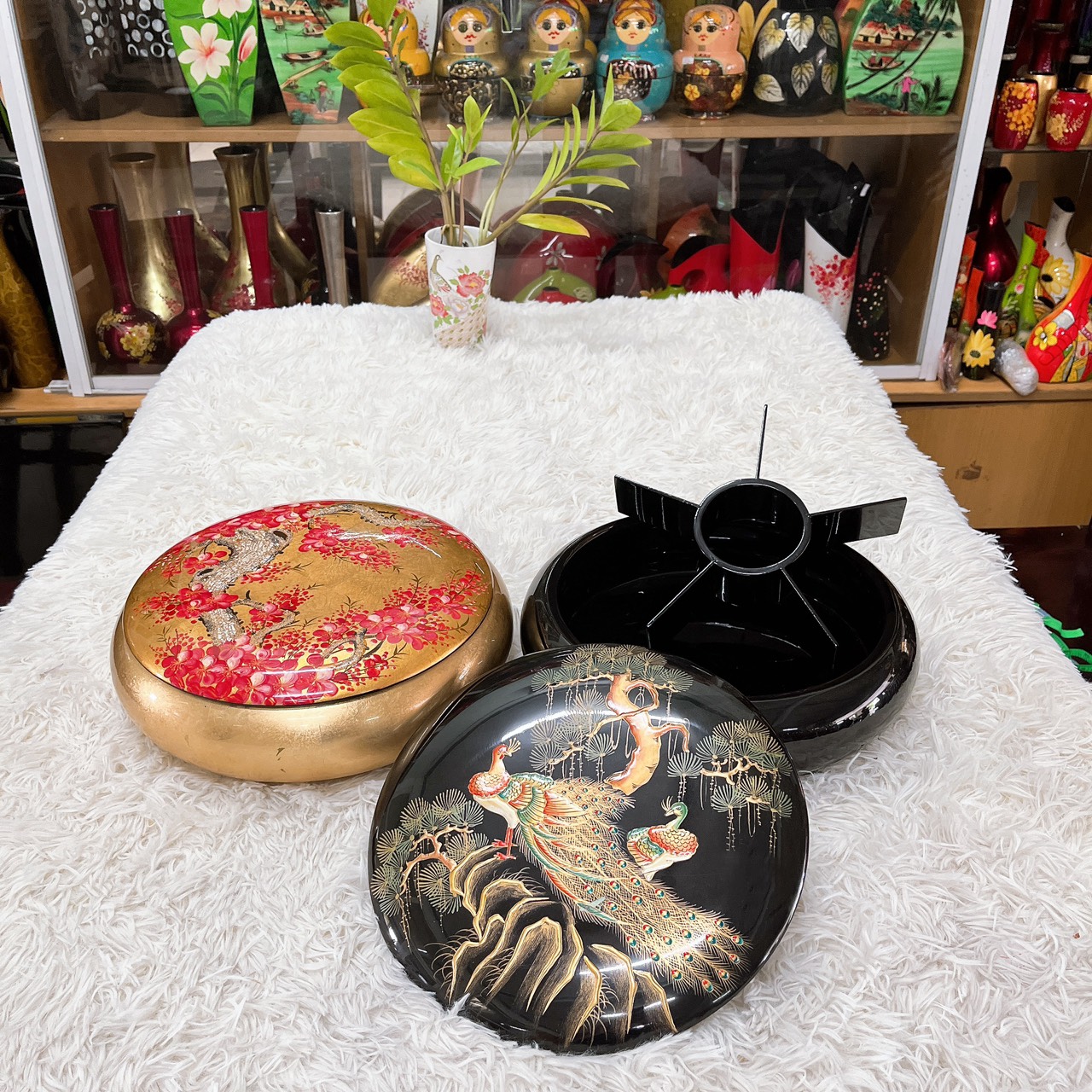 Hộp kẹo sơn mài, hộp mứt tết sơn mài, hũ kẹo, hũ mứt sơn mài - sơn mài Hạ Thái