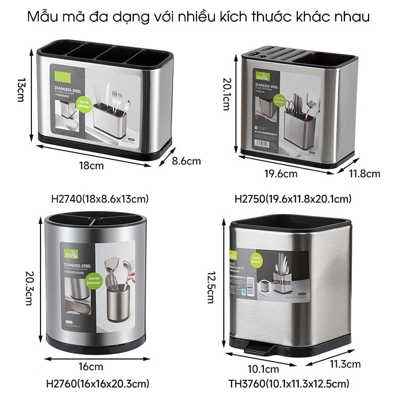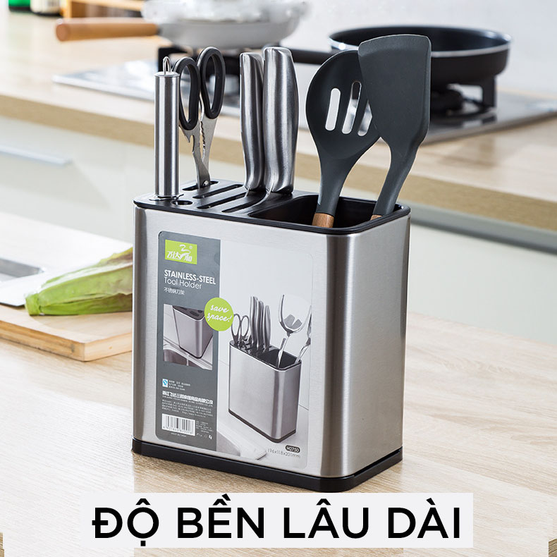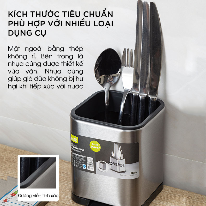 - Cắm dao đũa thìa cao cấp chất liệu inox không gỉ giúp bạn bảo quản dụng cụ nhà bếp một cách gọn gàng, sạch sẽ.