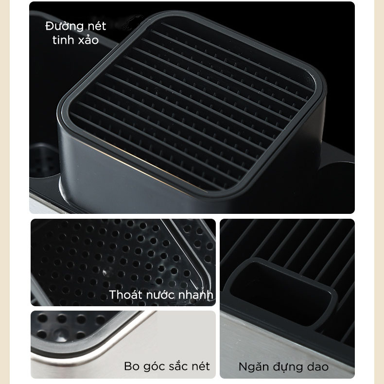 Kệ để dao thớt đũa muỗng nắp đa năng, chất liệu inox cao cấp chống gỉ sét, có khay đựng ráo nước