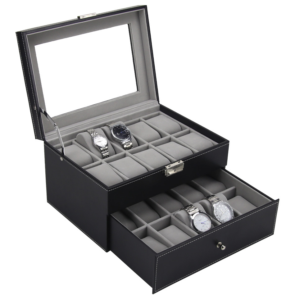 Bạn có khoảng 20 chiếc đồng hồ và đang cần mua hộp để đựng cho gọn thì không cần băn khoăn gì thêm nữa, chốt ngay mẫu hộp này nha, thiết kế 2 tầng dày