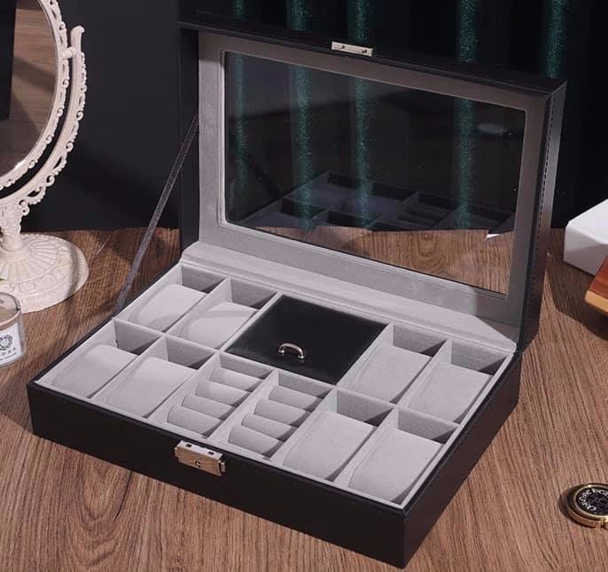 Bạn có khoảng 6-8 chiếc đồng hồ và phụ kiện trang sức như nhẫn, vòng ùng với đó bạn thích hộp có mặt kính để nhìn thấy phụ kiện bên trong hộp và hộp có