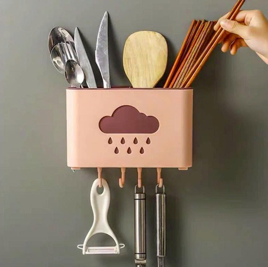 Hộp đựng đũa muỗng treo tường hình đám mây kèm móc treo khăn dụng cụ bếp tiện lợi