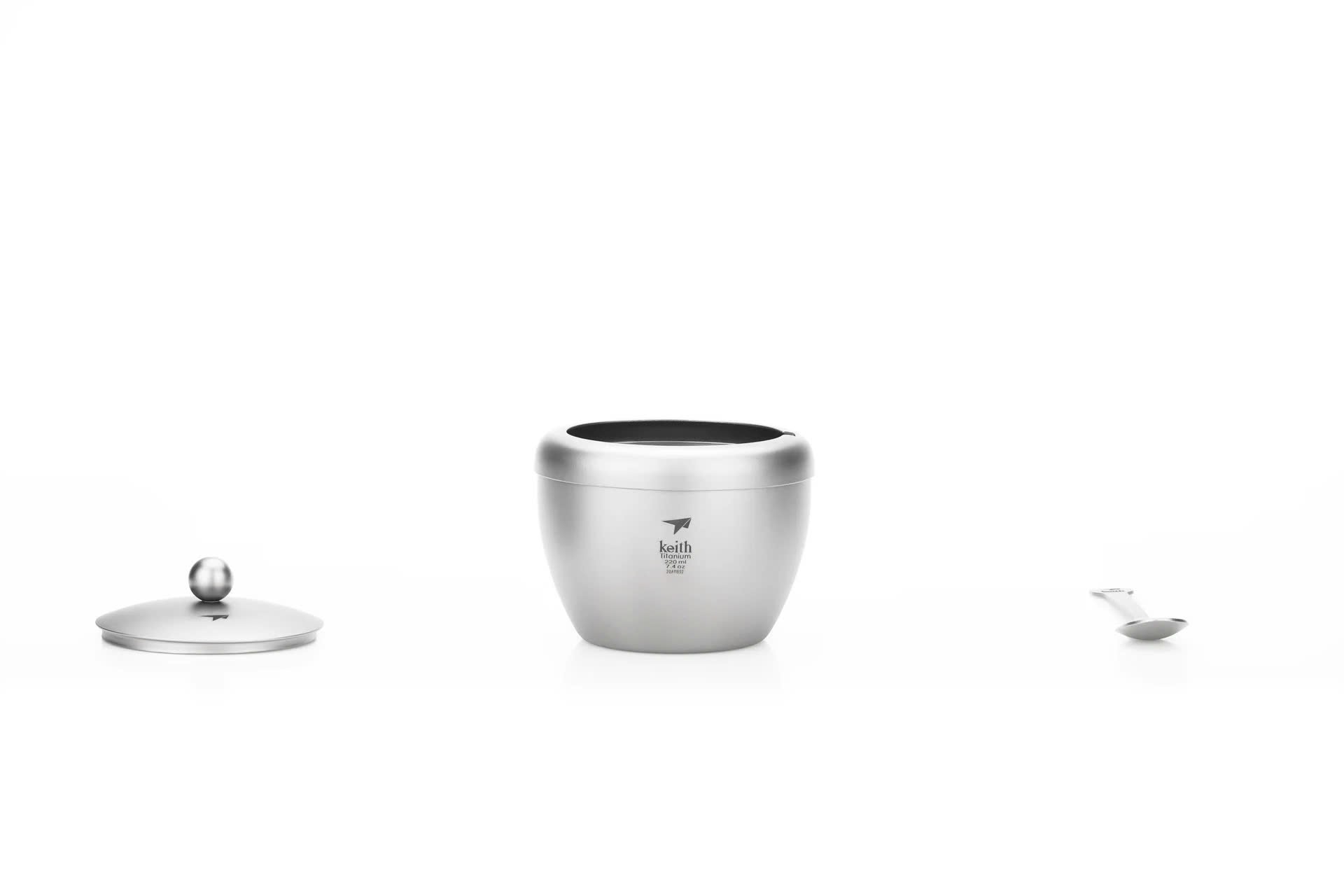 THÔNG TIN SẢN PHẨM: - Thương hiệu: Keith Titanium - Xuất xứ: Trung Quốc - Chất liệu: Titanium - Kích thước: Lọ đựng gia vị: Ø 87 × 85 mm Thìa: 23 × 110 mm