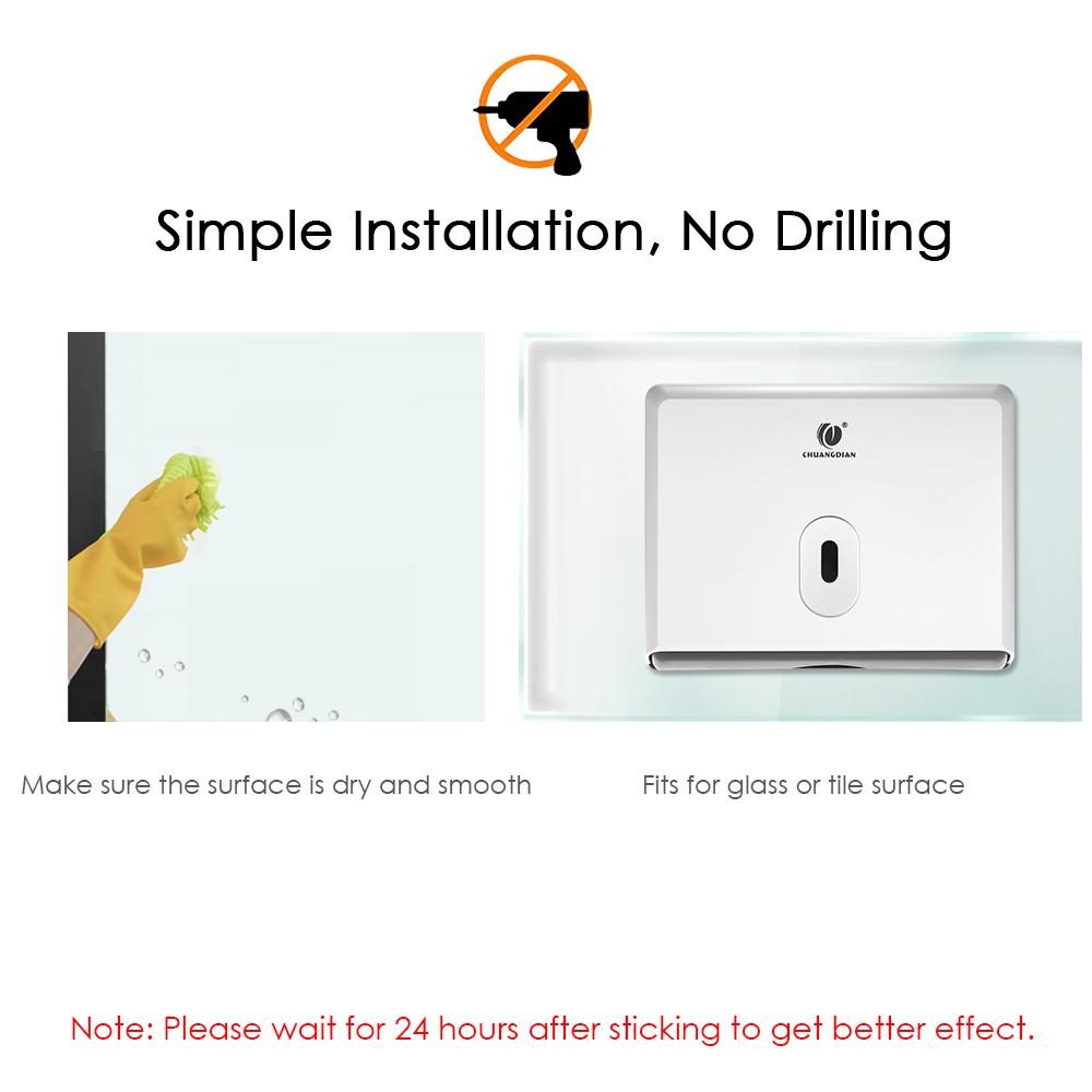 The toilet paper dispenser is made of new and good quality ABS, which is light weight yet durable, compact and in sleek looking. Equipped with tapes and adhesive hooks for no drilling installation. It holds up to 200pcs paper towel and works well in keeping your counter surface clutter free. Perfect for hotel,shopping mall, office building, bathroom, toilet, school, kindergarten, banks and other public places.