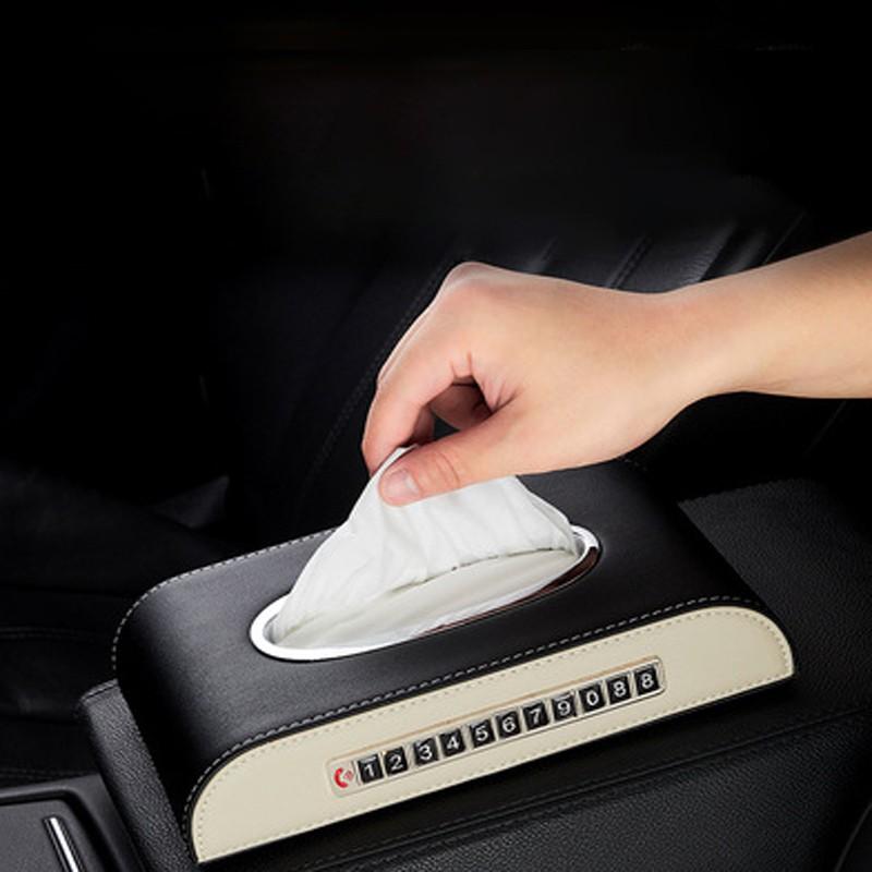 ✨Hộp đựng khăn giấy chất liệu da trên ô tô và bàn làm việc,kèm bảng số điện thoại