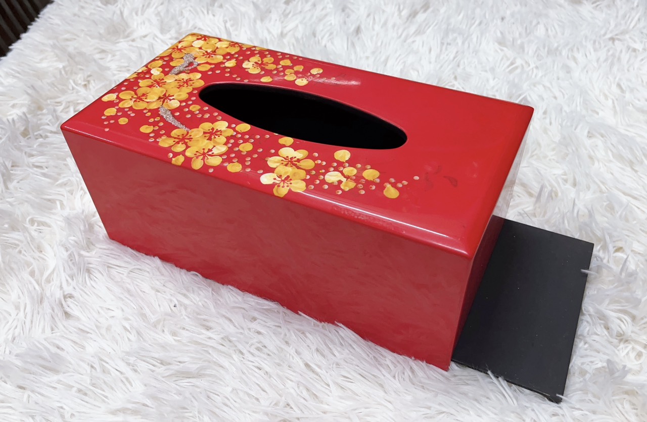 Hộp Đựng Khăn Giấy Sơn Mài Cao Cấp Họa Tiết Hoa Mận | Arst Of Lacquer